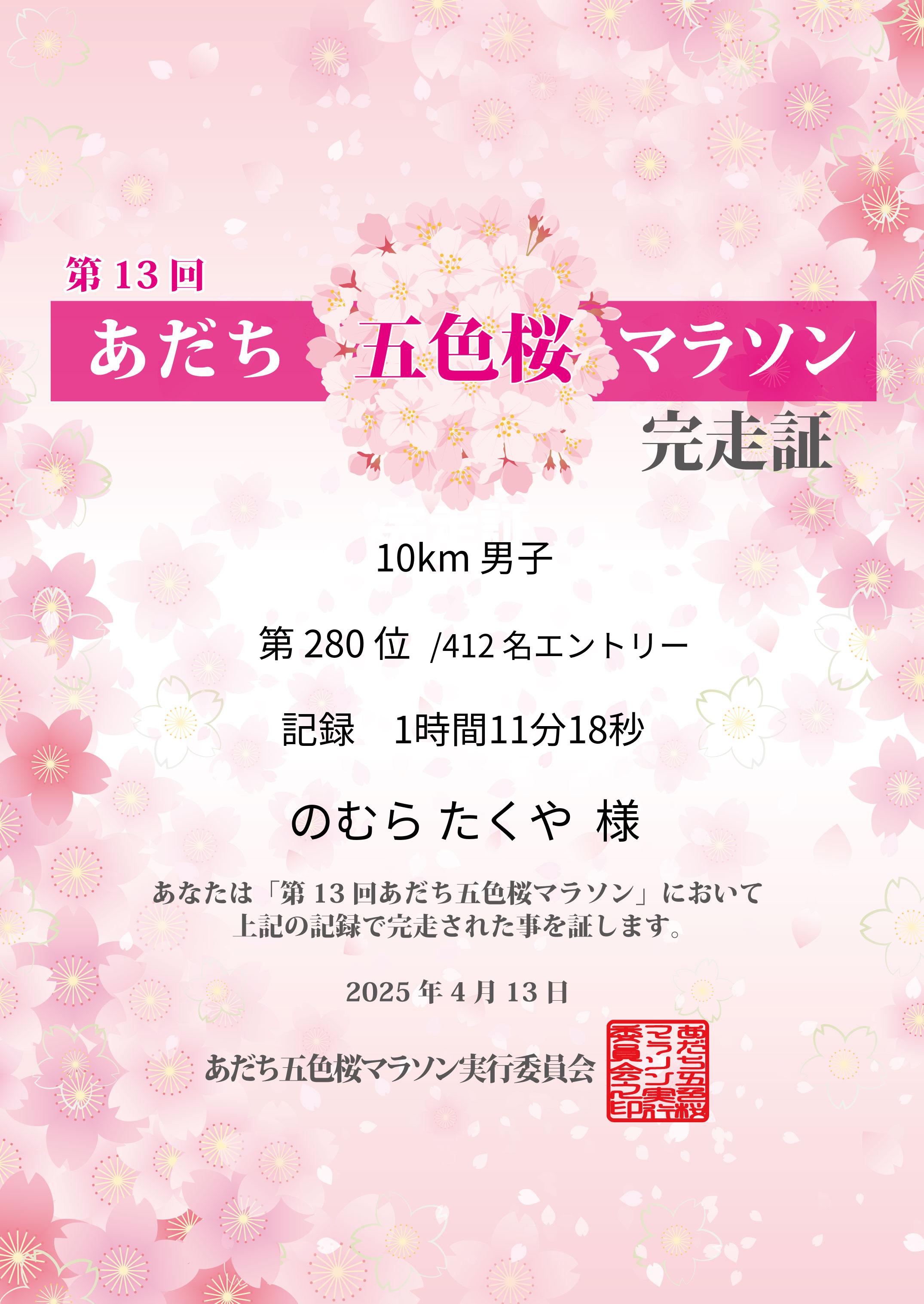 第13回あだち五色桜マラソン