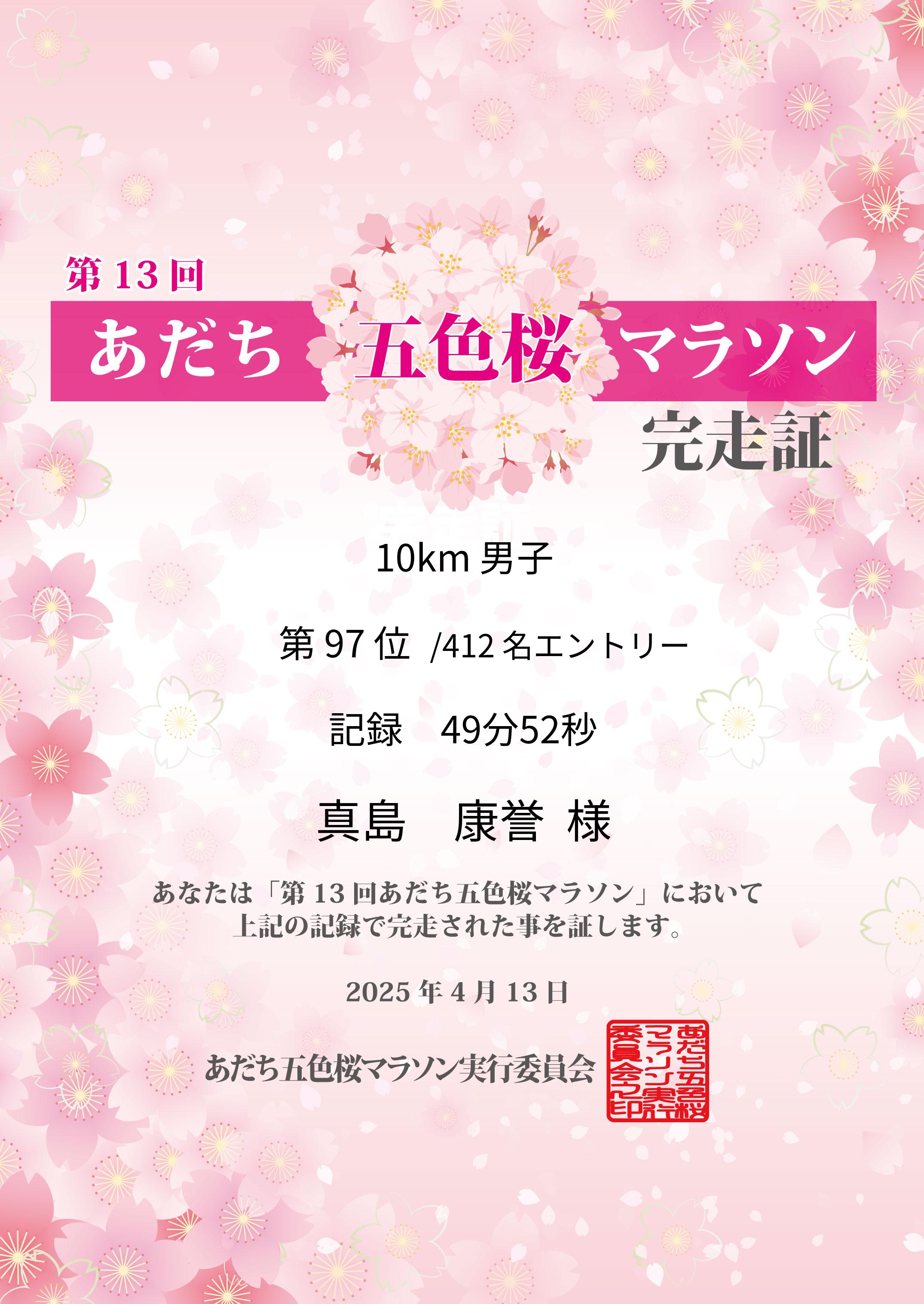 第13回あだち五色桜マラソン