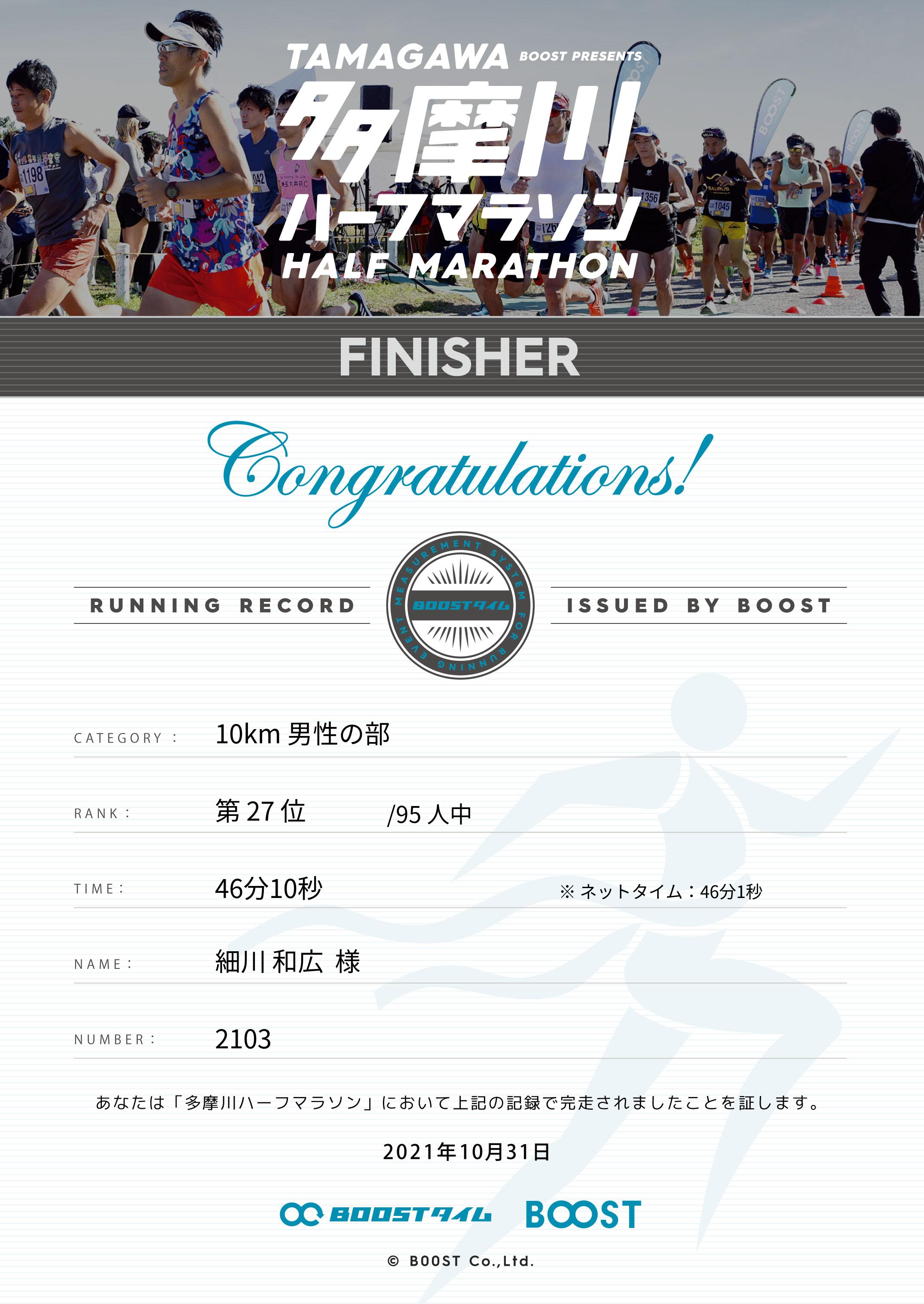 | 10km | 0:46:10 | 0:22:59 | 27 |