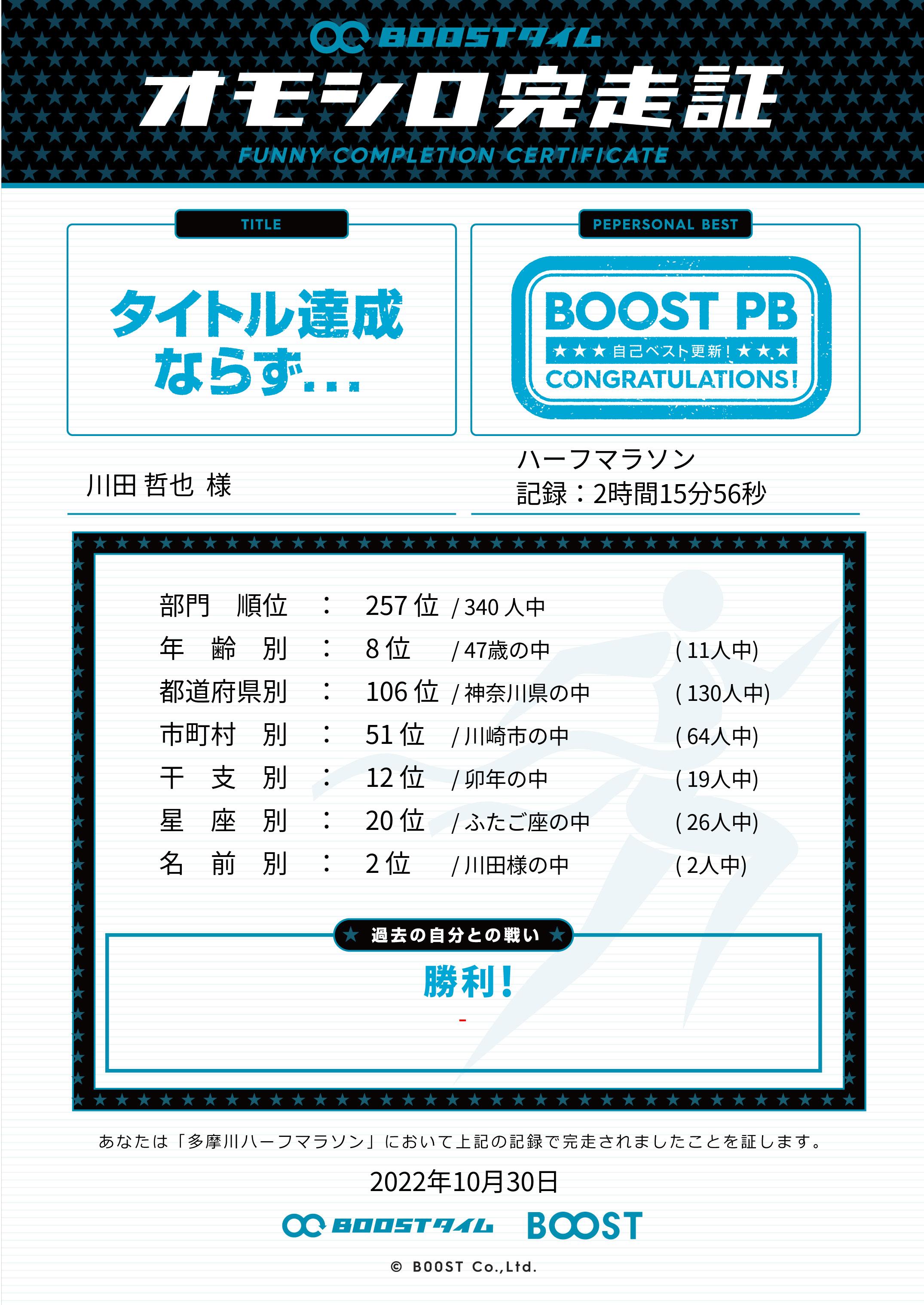 | 21.0975km | 2:15:56 | 40:58 | 213 |