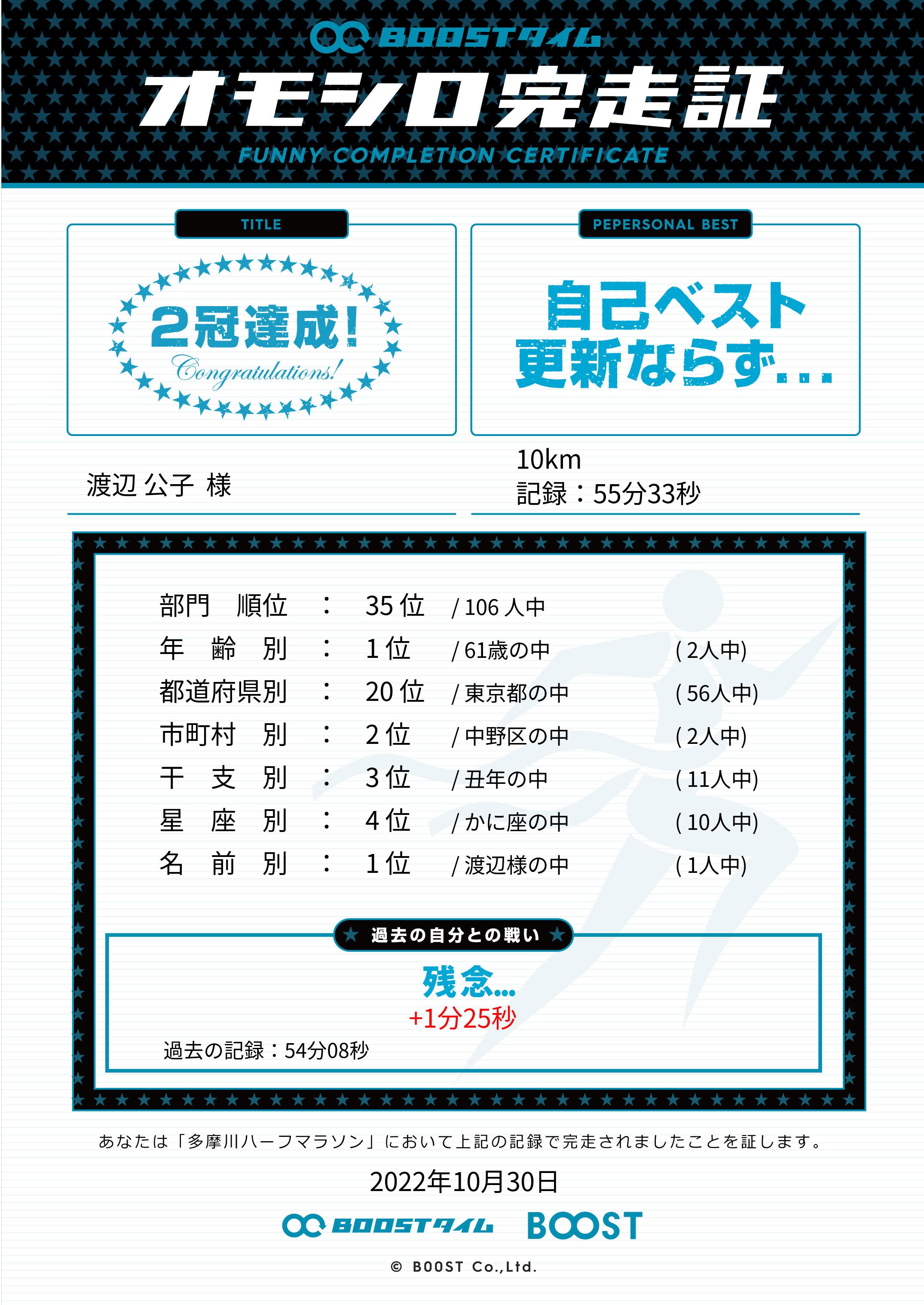 | 距離別順位: | 35位 /106 人中 |