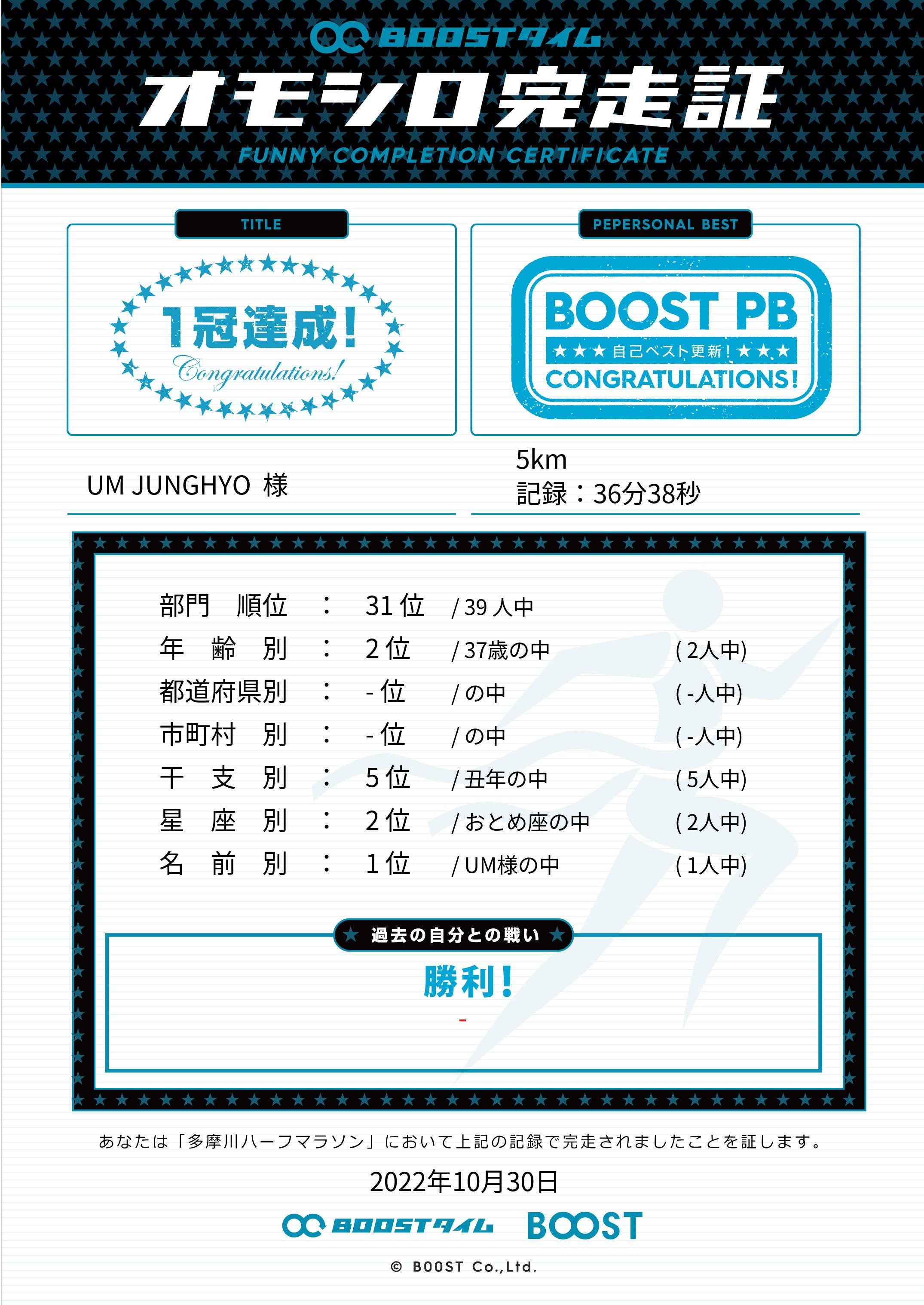 | 距離別順位: | 31位 /39 人中 |