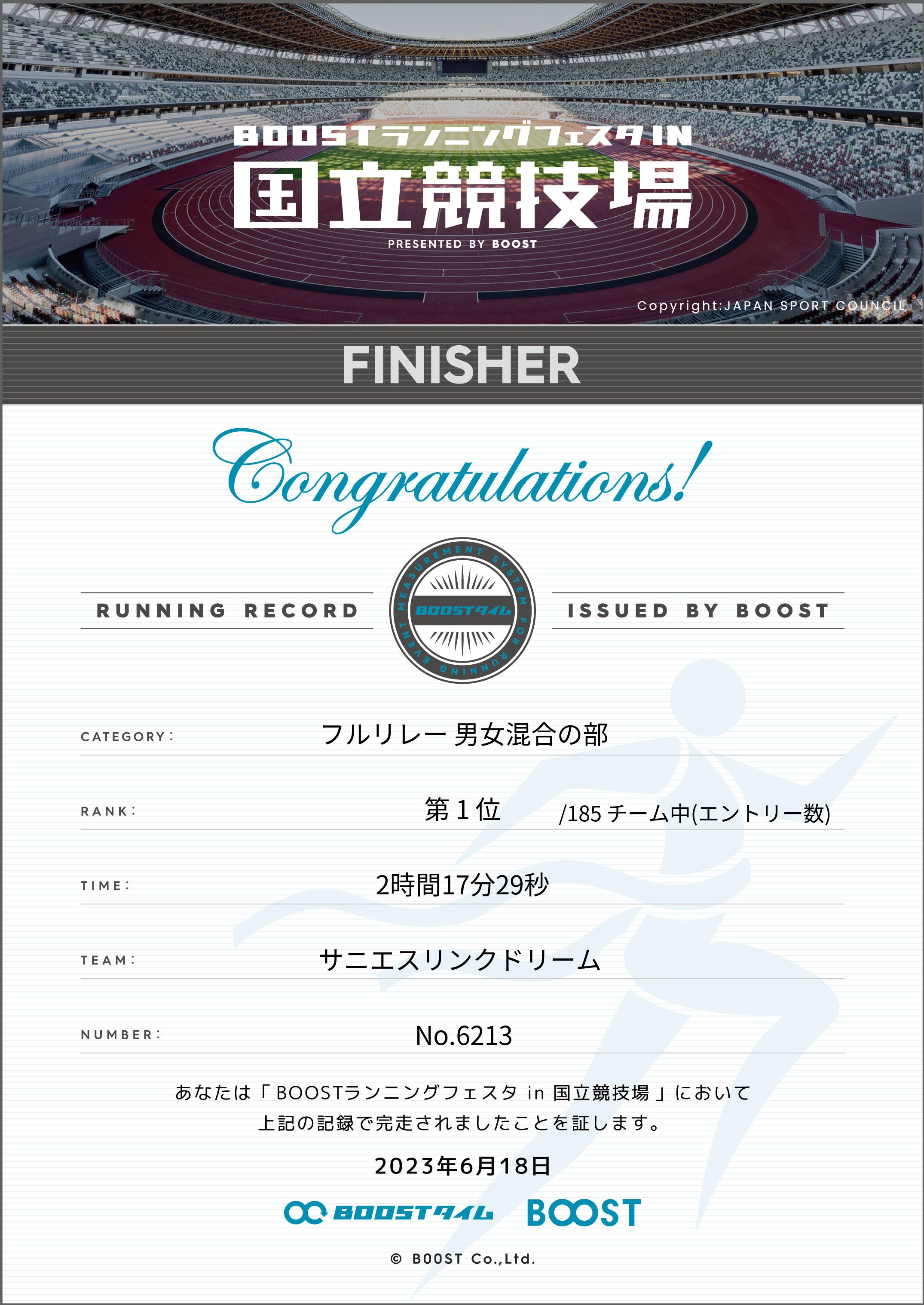 | 部門別順位: | 1位 /185 組中 |
