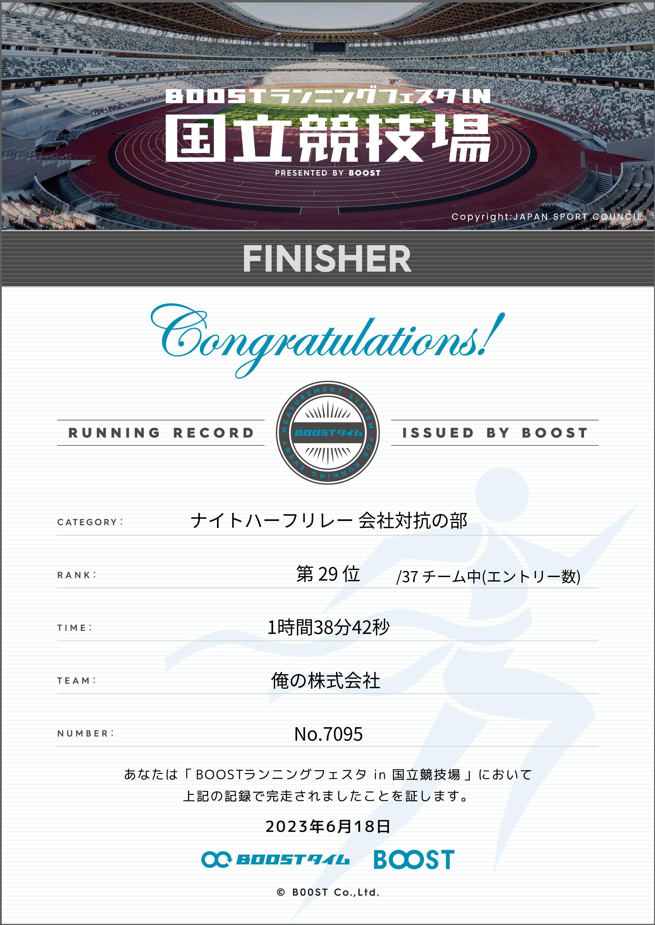 | 部門別順位: | 29位 /37 組中 |