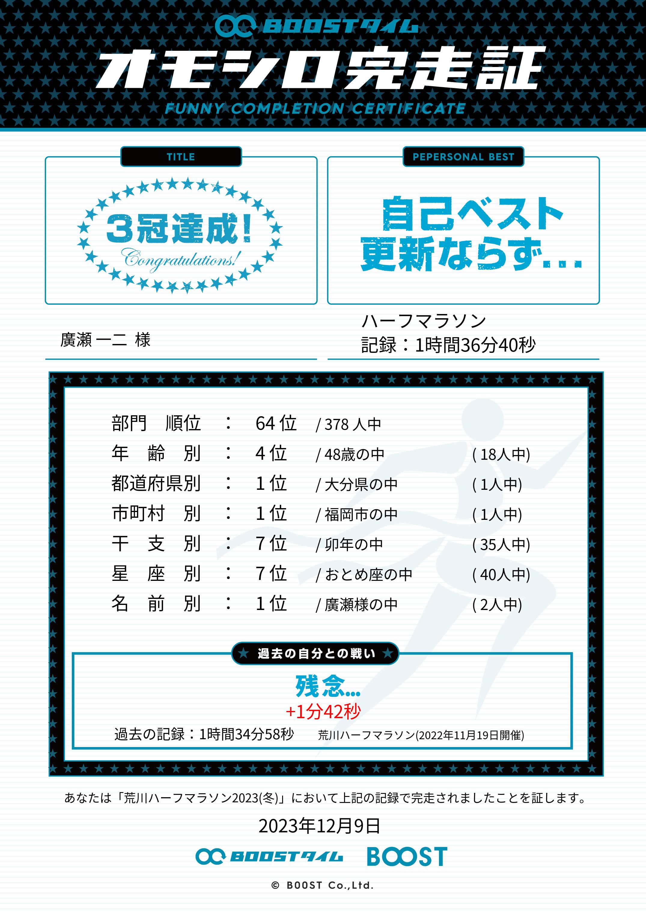 | 距離別順位: | 64位 /378 人中 |