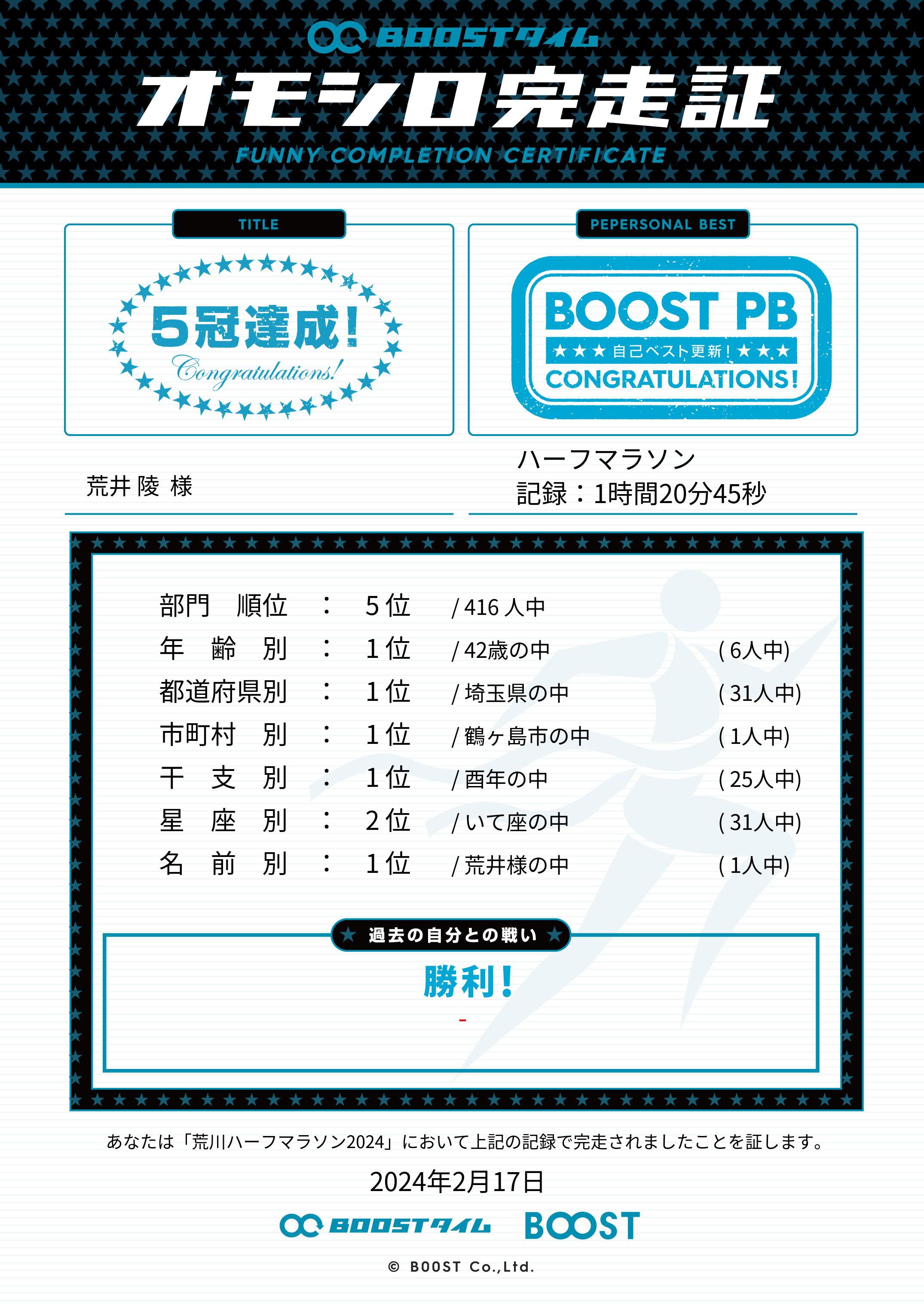 | 距離別順位: | 5位 /416 人中 |