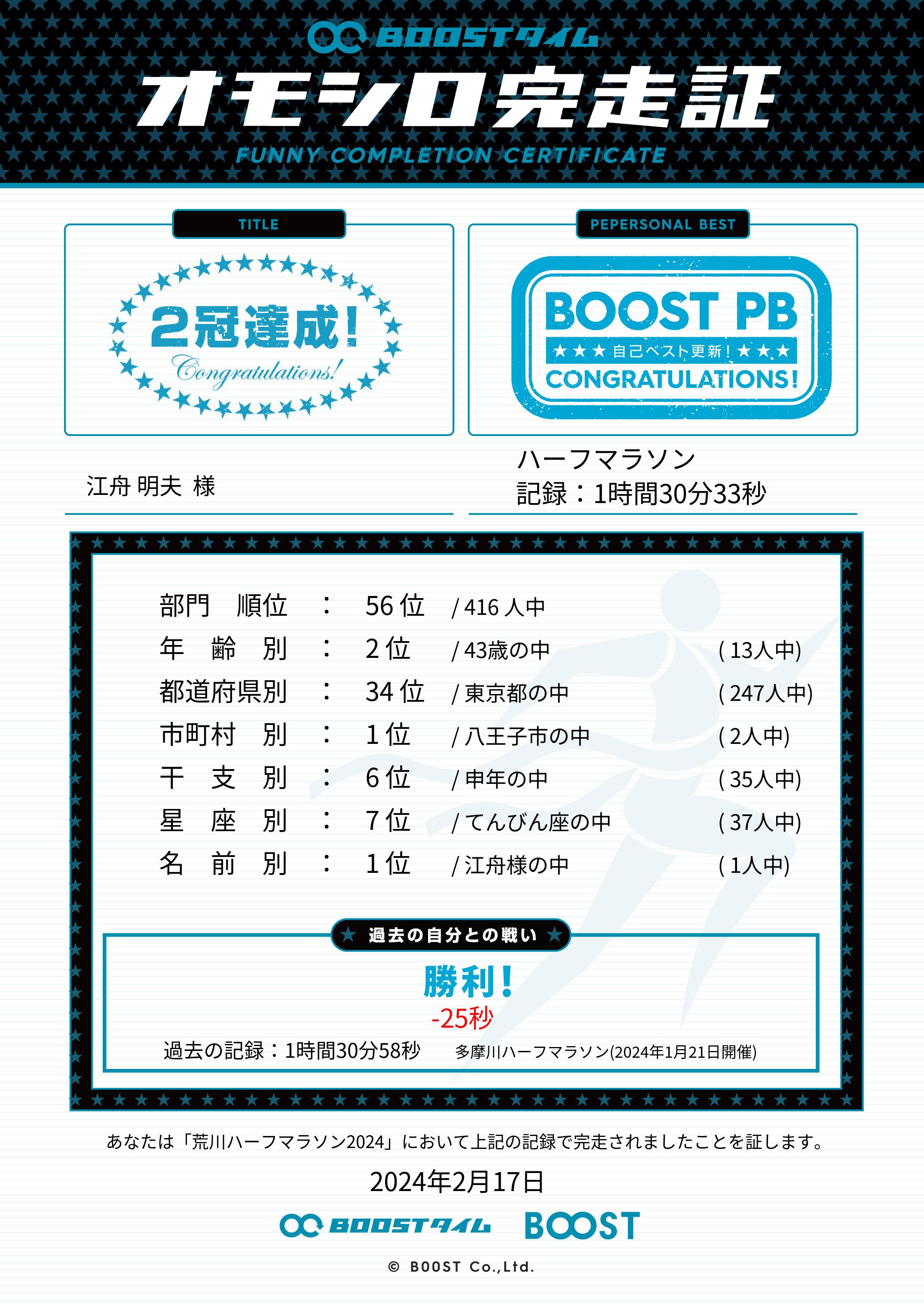 | 距離別順位: | 56位 /416 人中 |