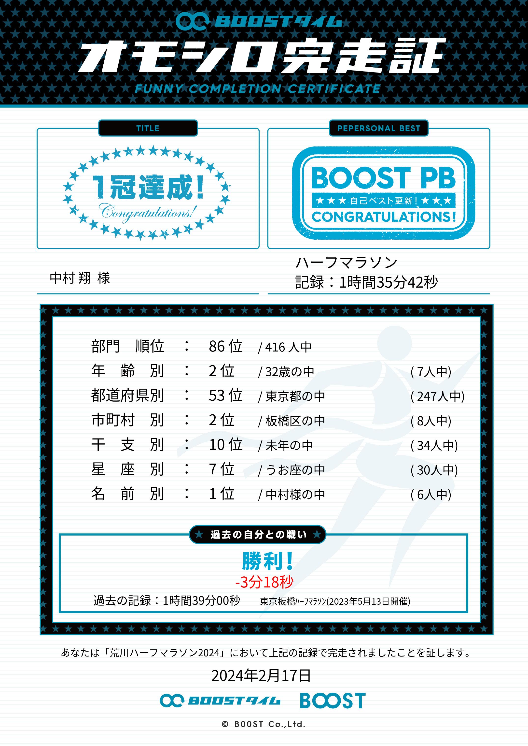 | 距離別順位: | 86位 /416 人中 |