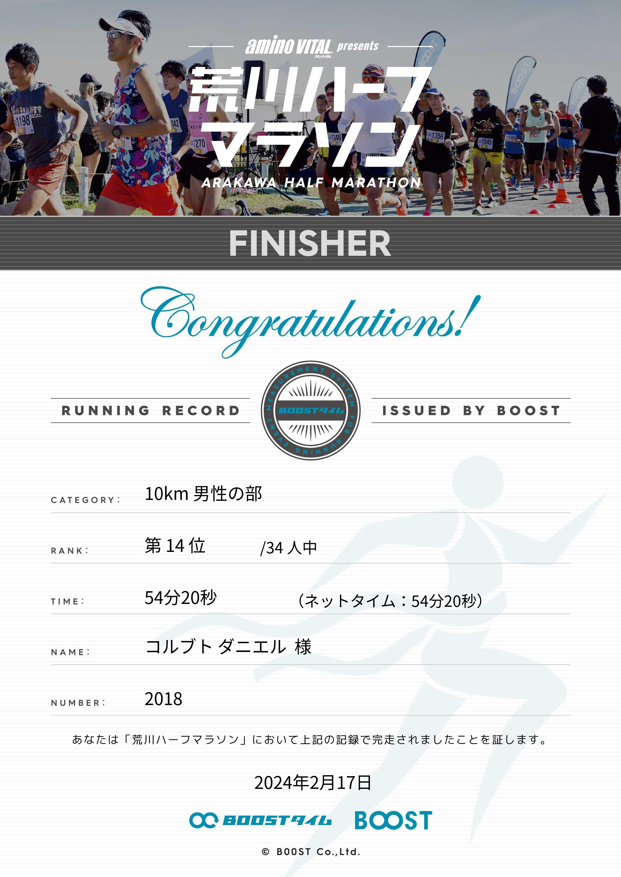 | 距離別順位: | 17位 /49 人中 |