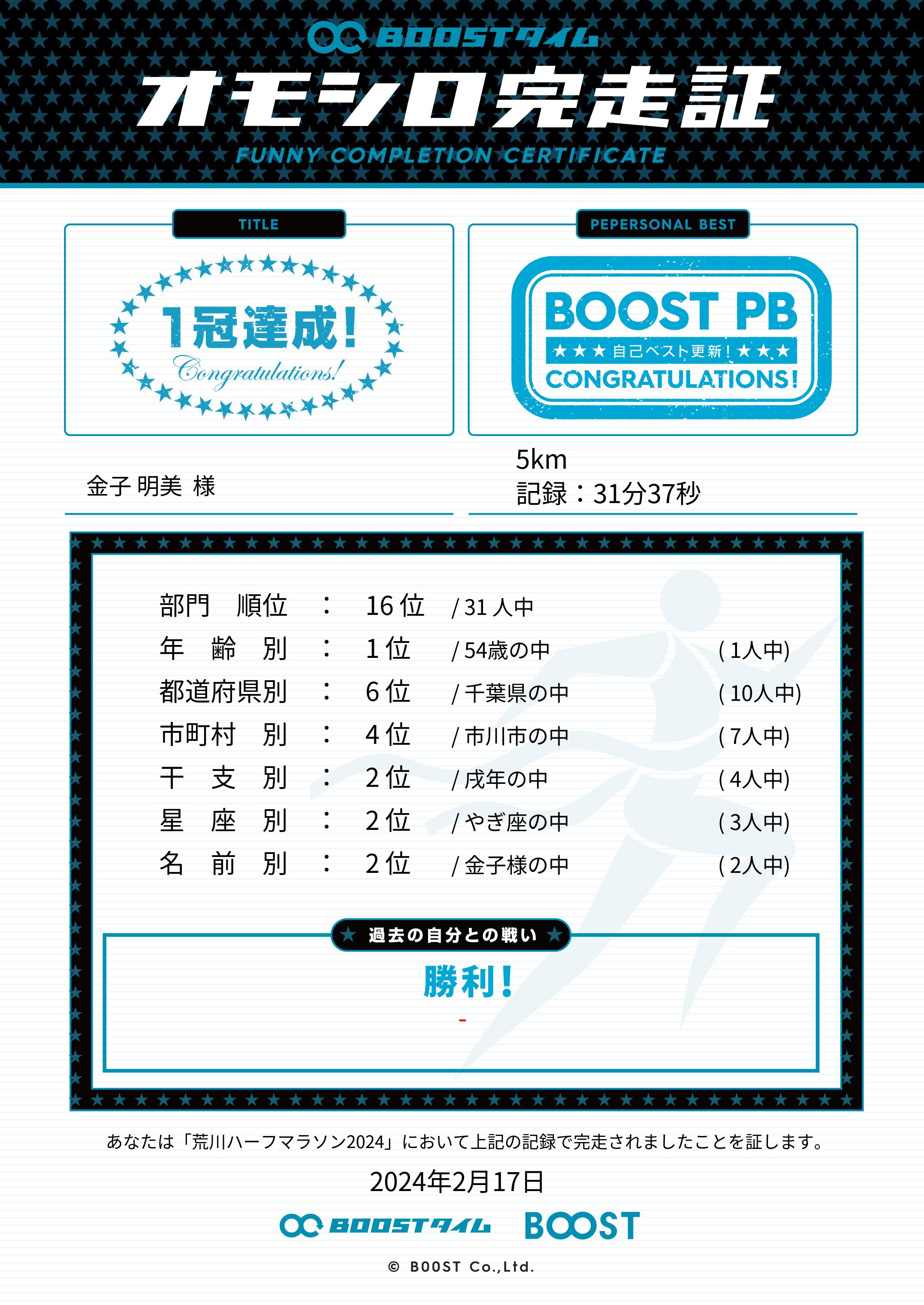 | 距離別順位: | 16位 /31 人中 |