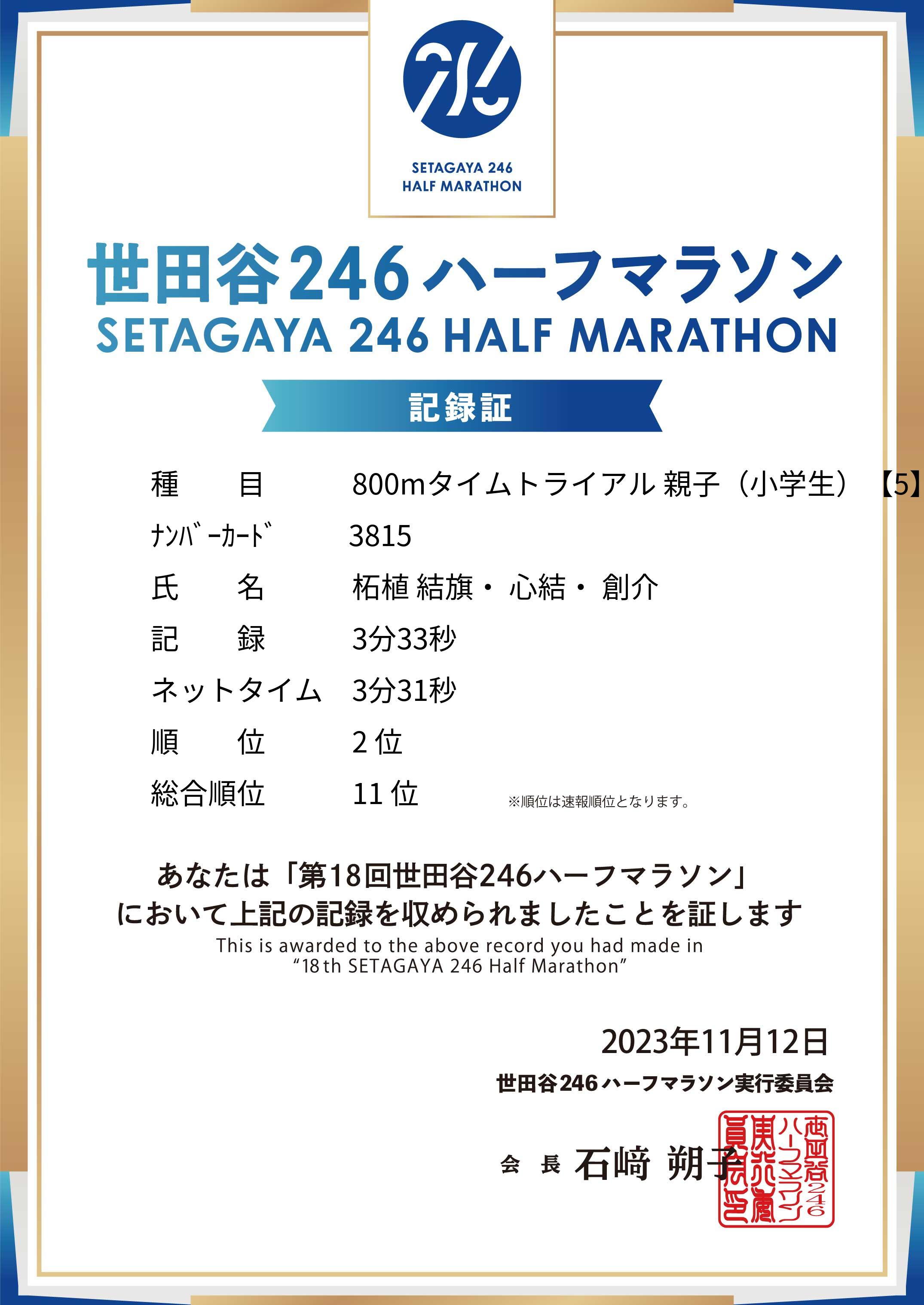 ※速報値のため参考順位/記録となります。