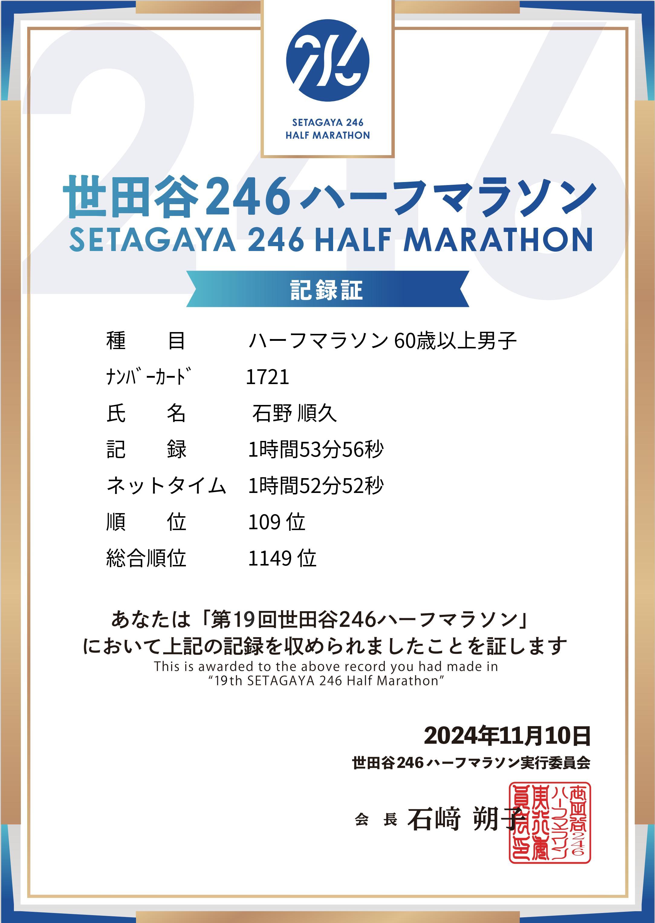 ハーフマラソン 60歳以上男子