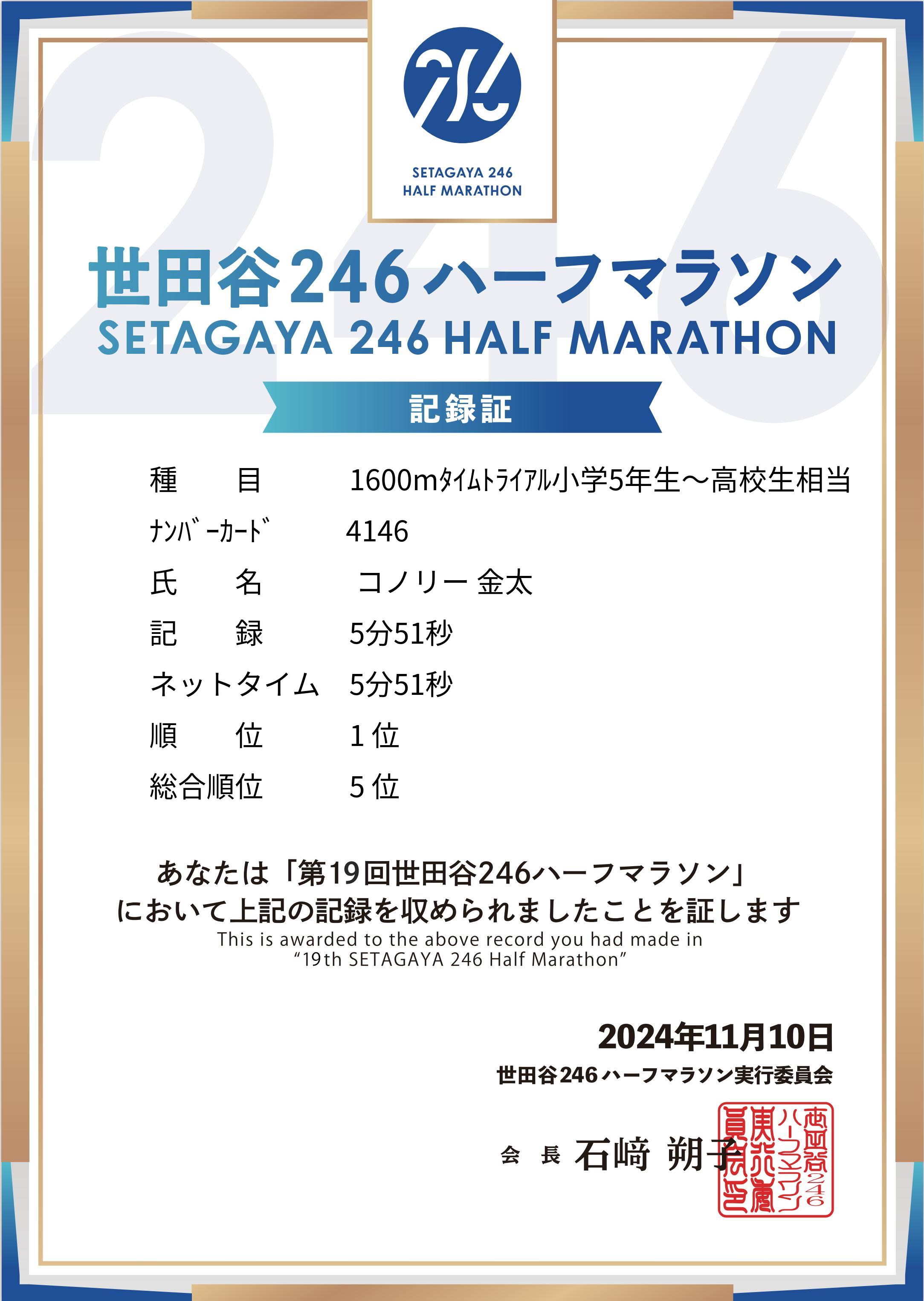 1600mタイムトライアル小学5年生~高校生相当