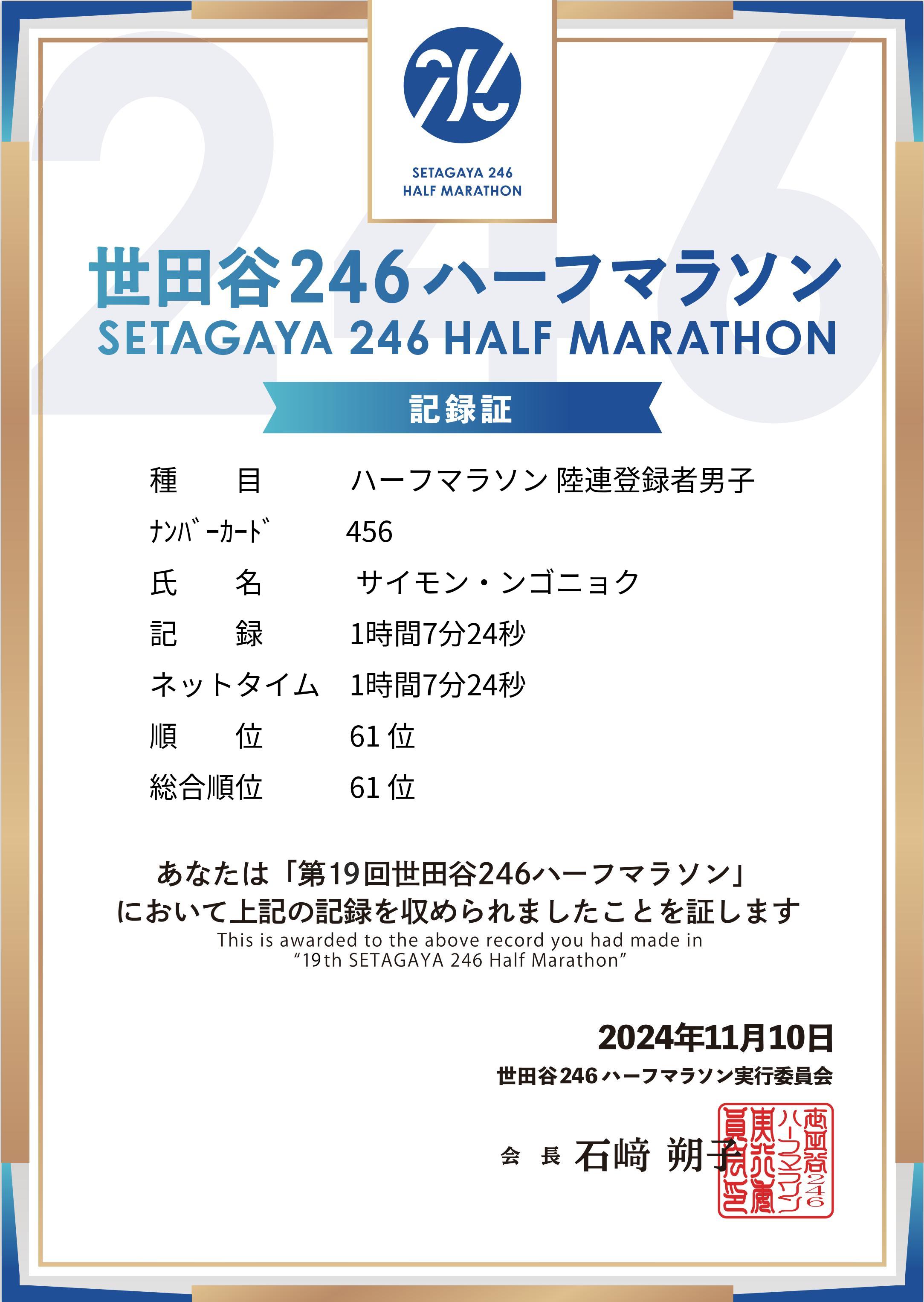 ハーフマラソン 陸連登録者男子