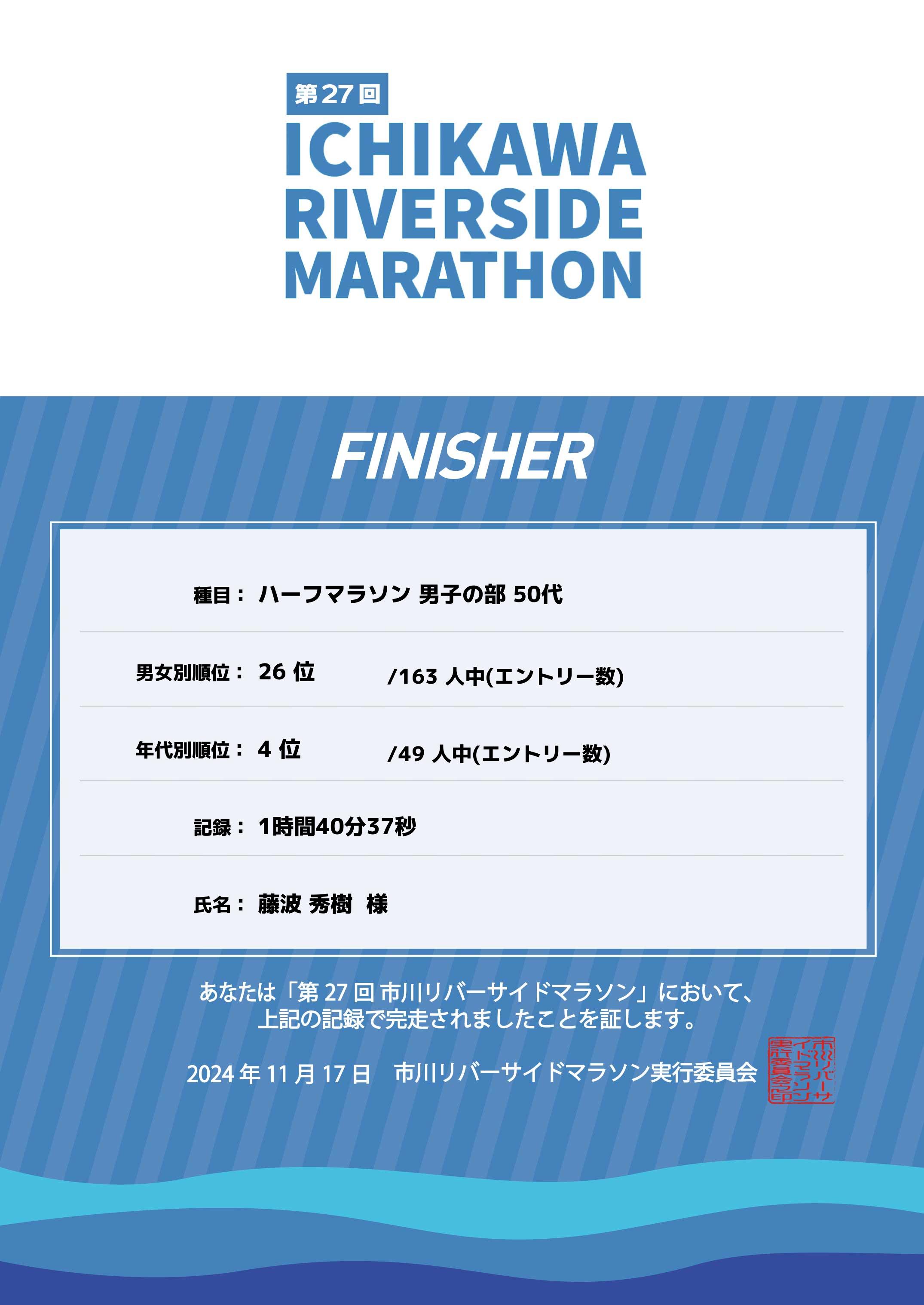 第27回 市川リバーサイドマラソン