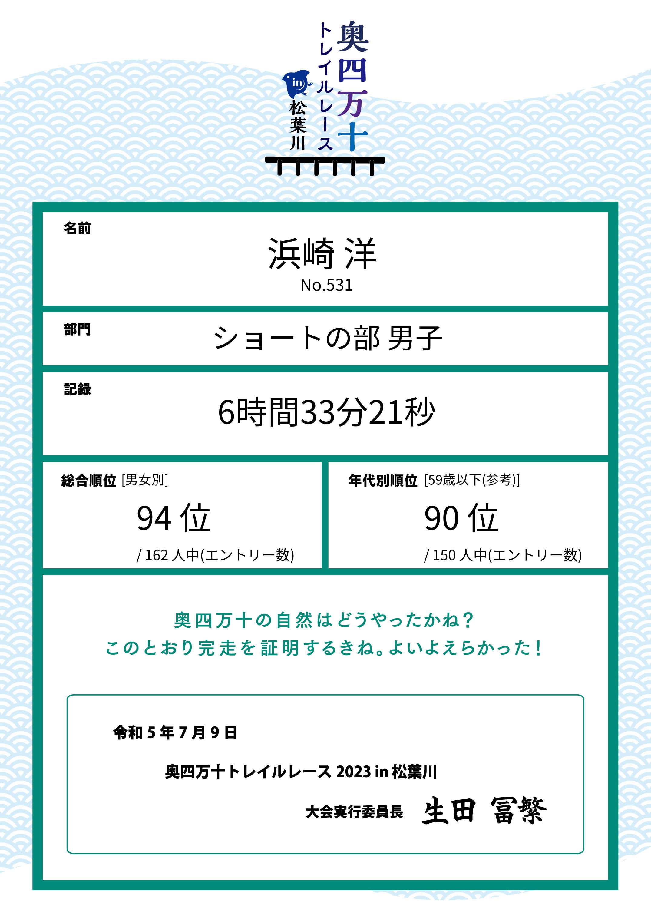 | 種目別順位: | 125位 /219 人中 |