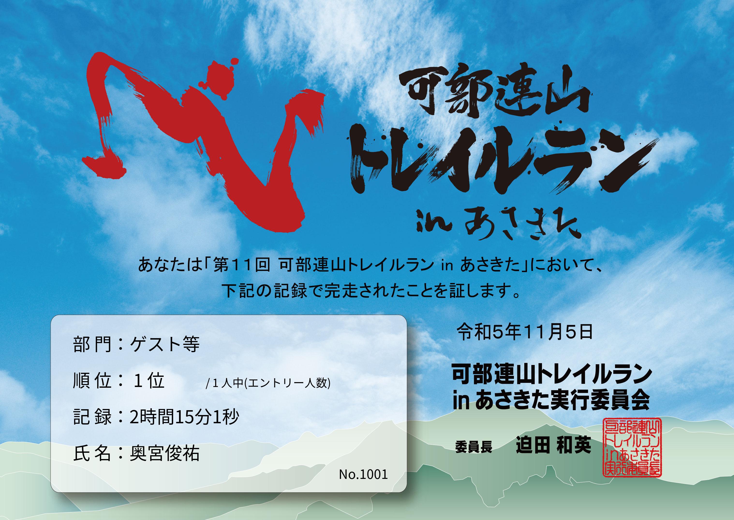 | 男女別順位: | 1位 /1 人中 |