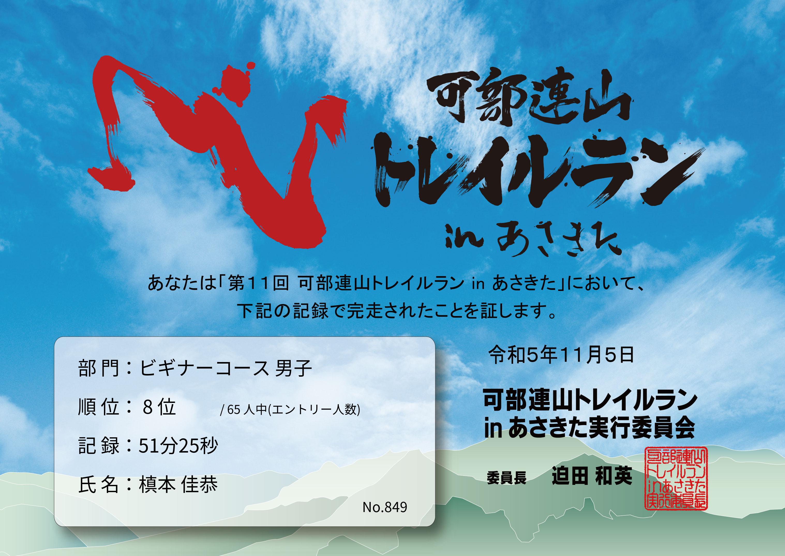 | 男女別順位: | 8位 /65 人中 |