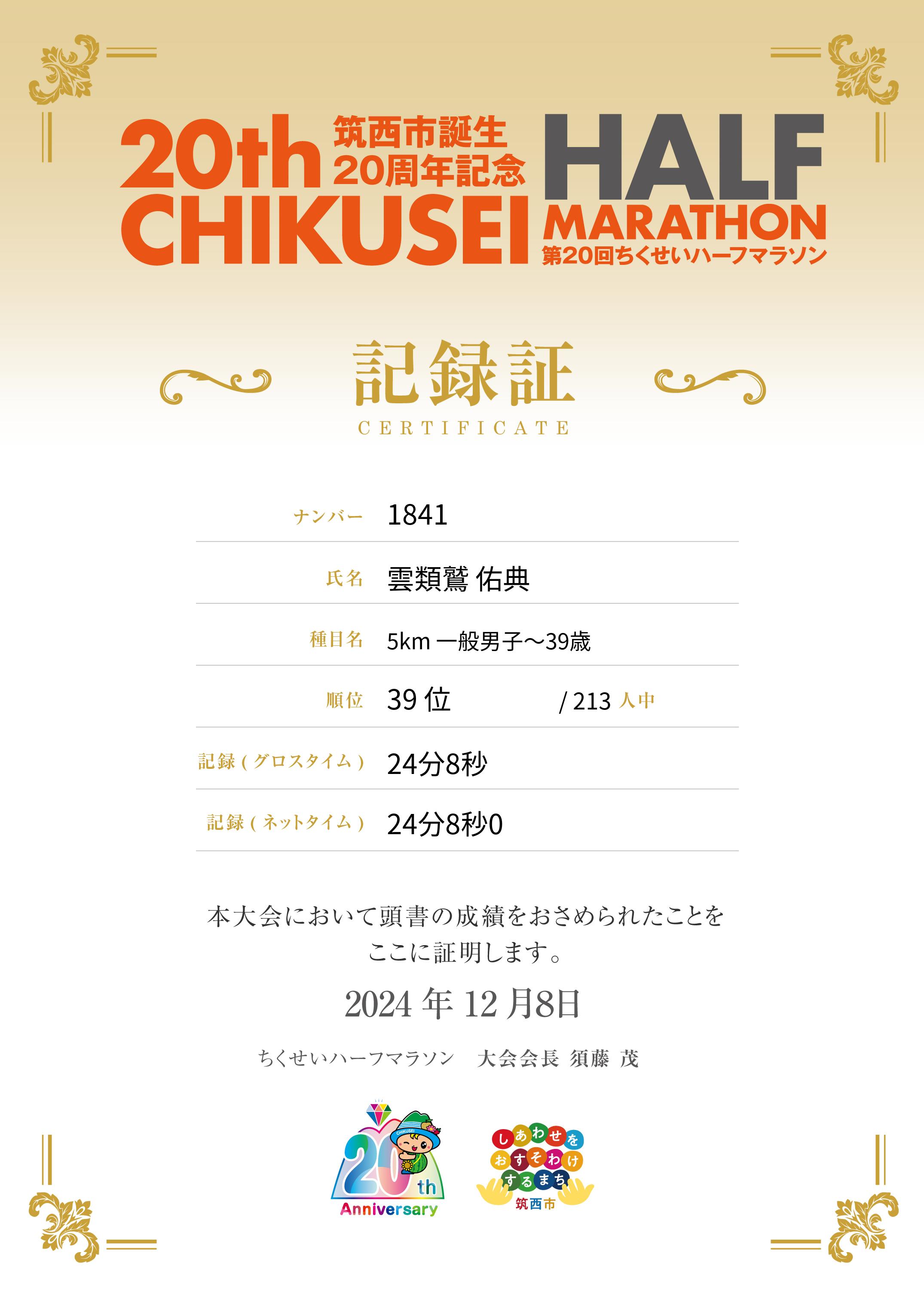 | 距離順位: | 130位/514人中 |