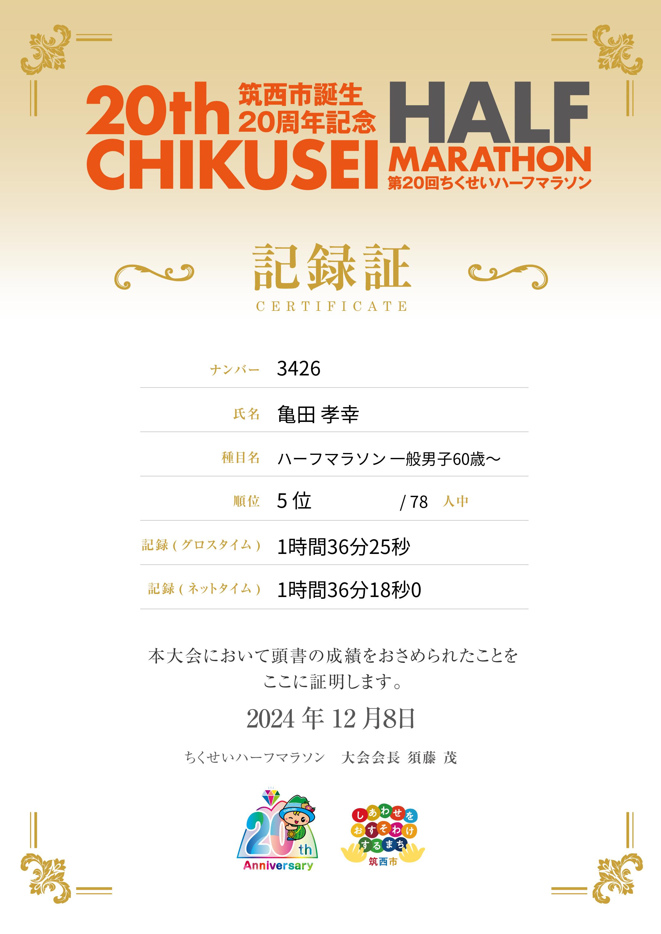 ハーフマラソン 一般男子60歳~