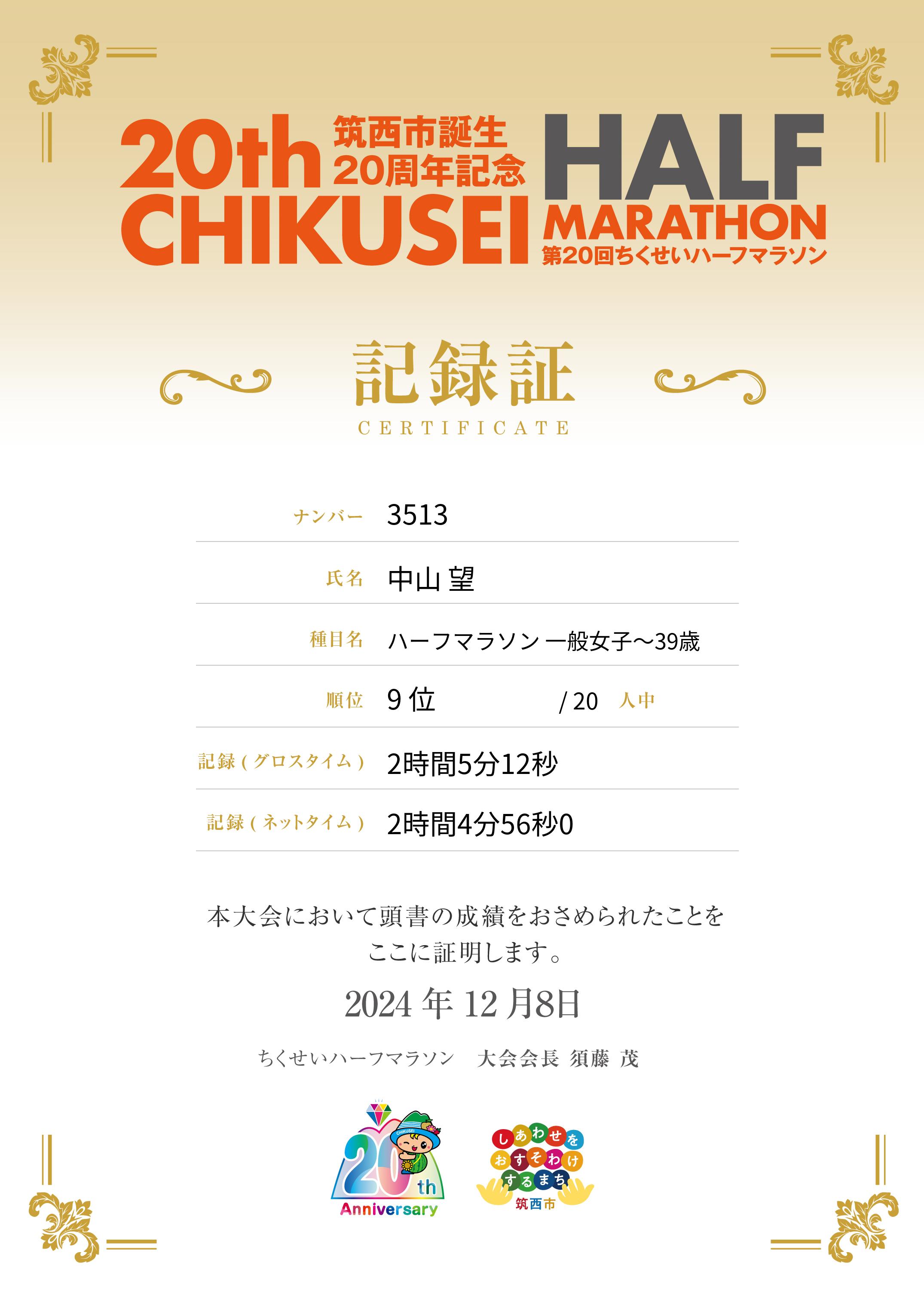 ハーフマラソン 一般女子~39歳