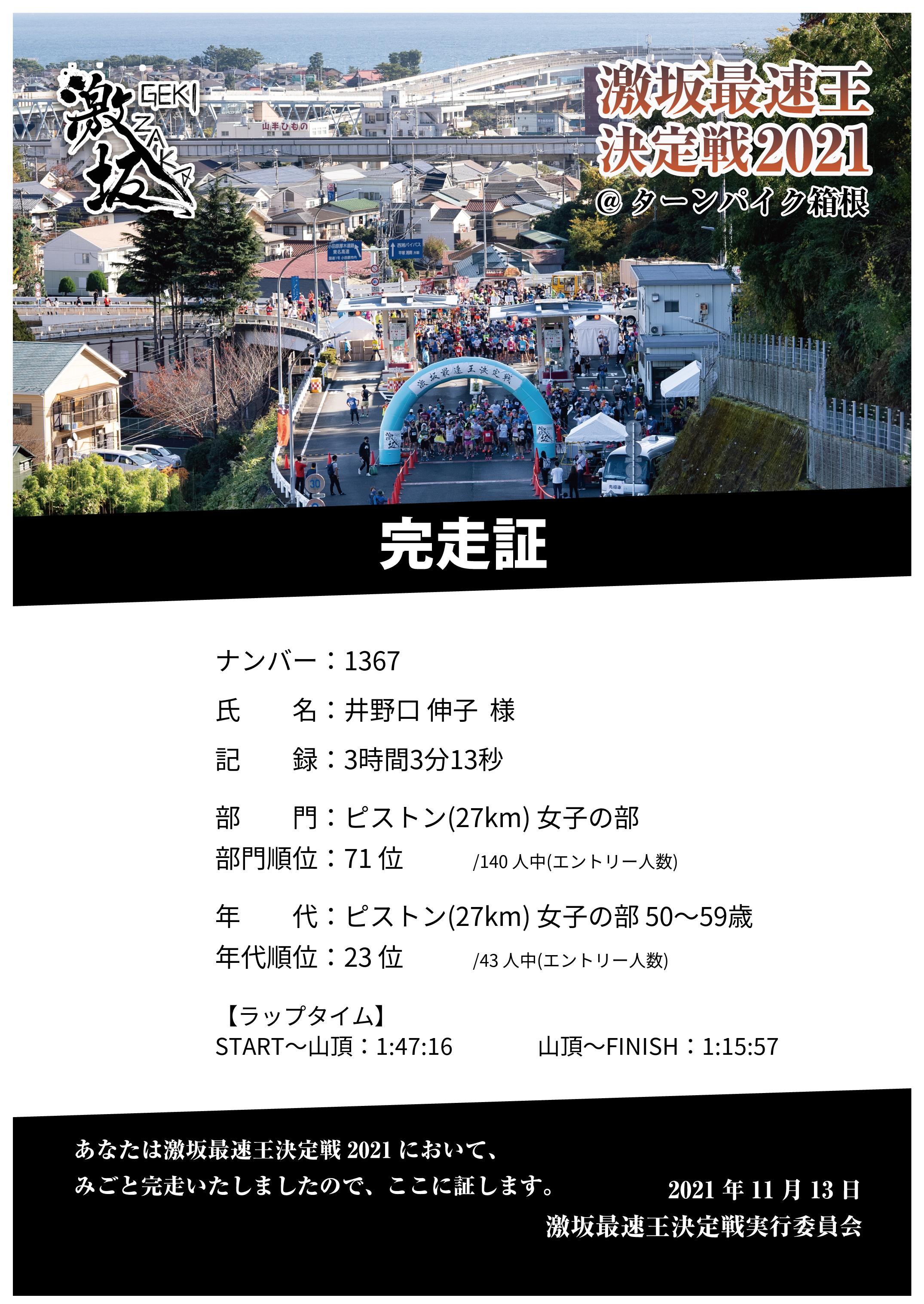 | 山頂通過 | 1:47:16 | - | 68 |