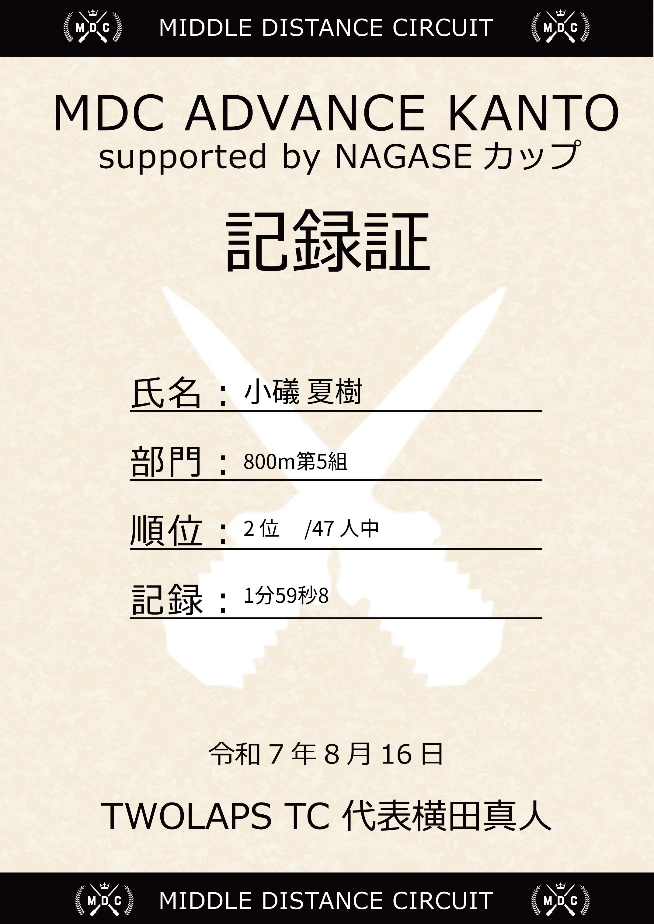 | 記 録: | 1分59秒8 |