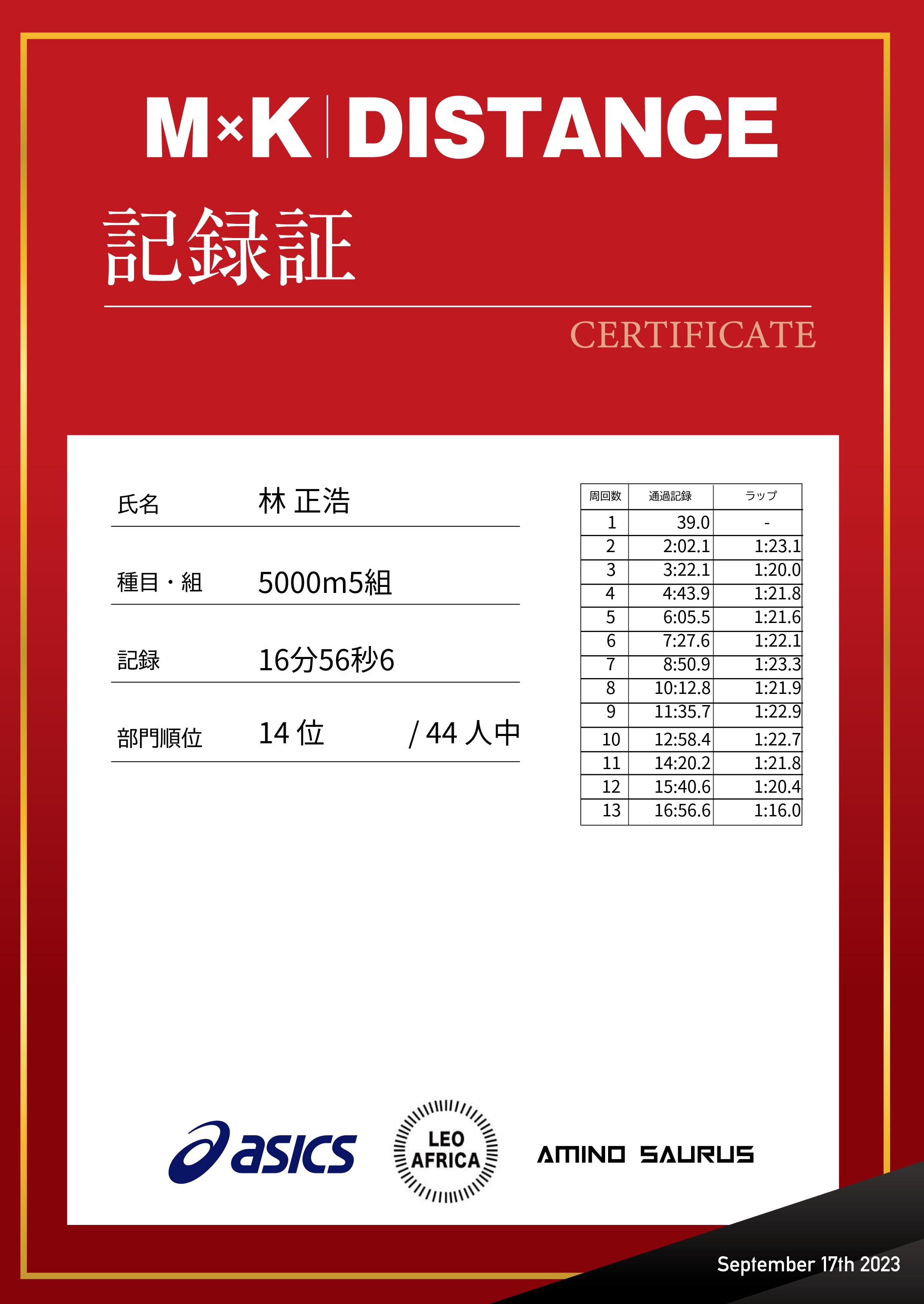 | 5000m | 16:56.6 | 1:16.0 | 14 |