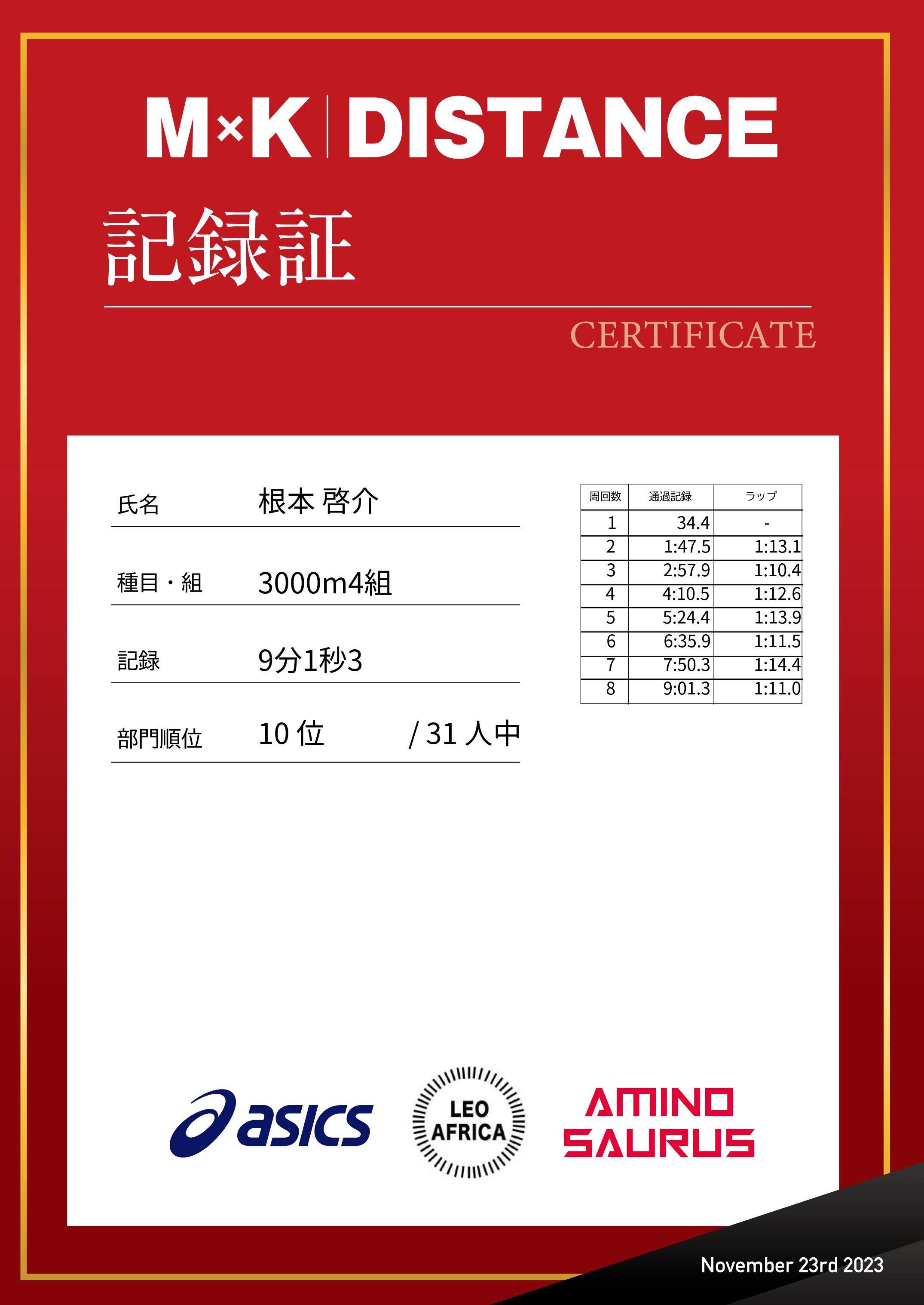 | 3000m | 9:01.3 | 1:11.0 | 10 |