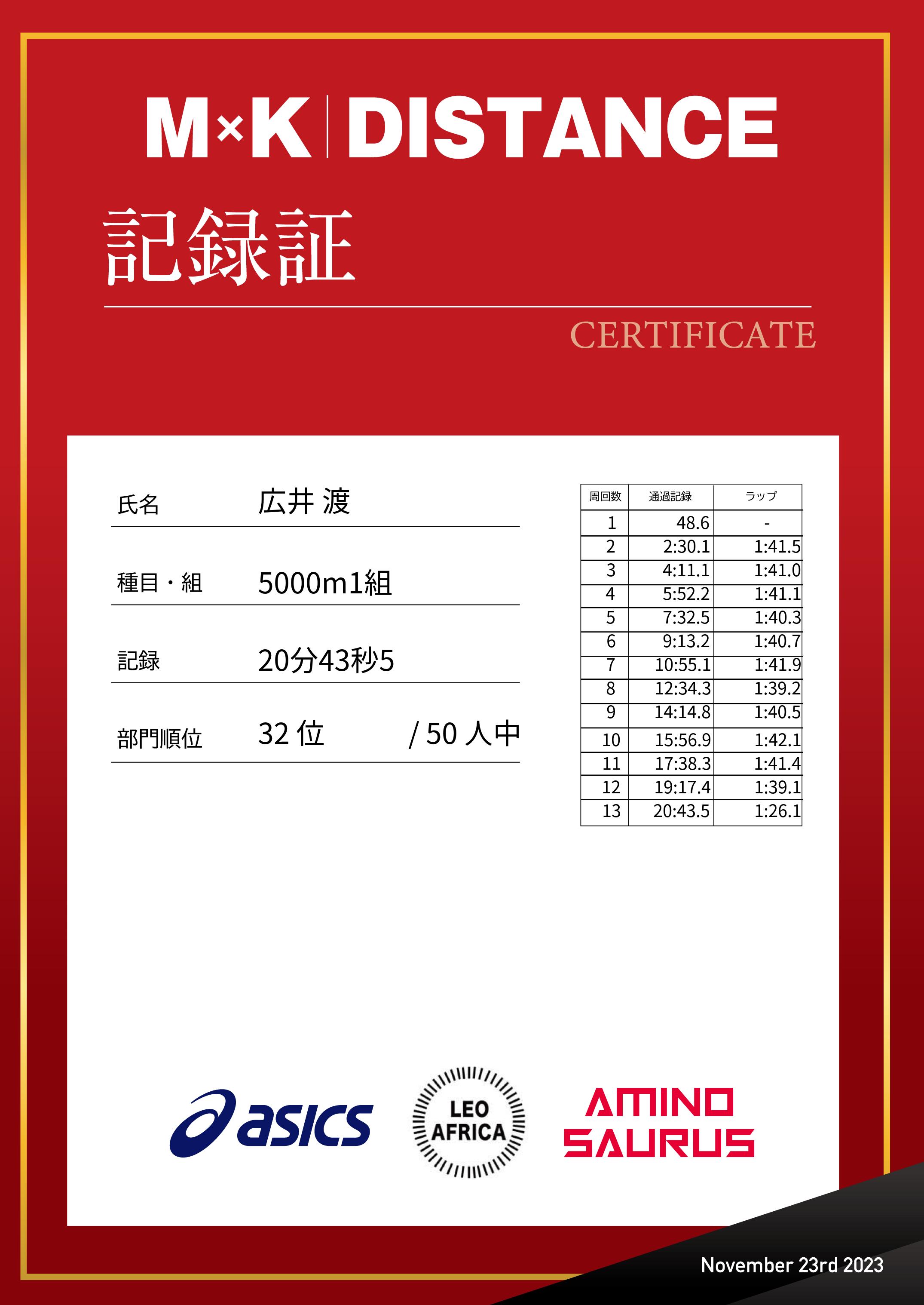 | 5000m | 20:43.5 | 1:26.1 | 32 |