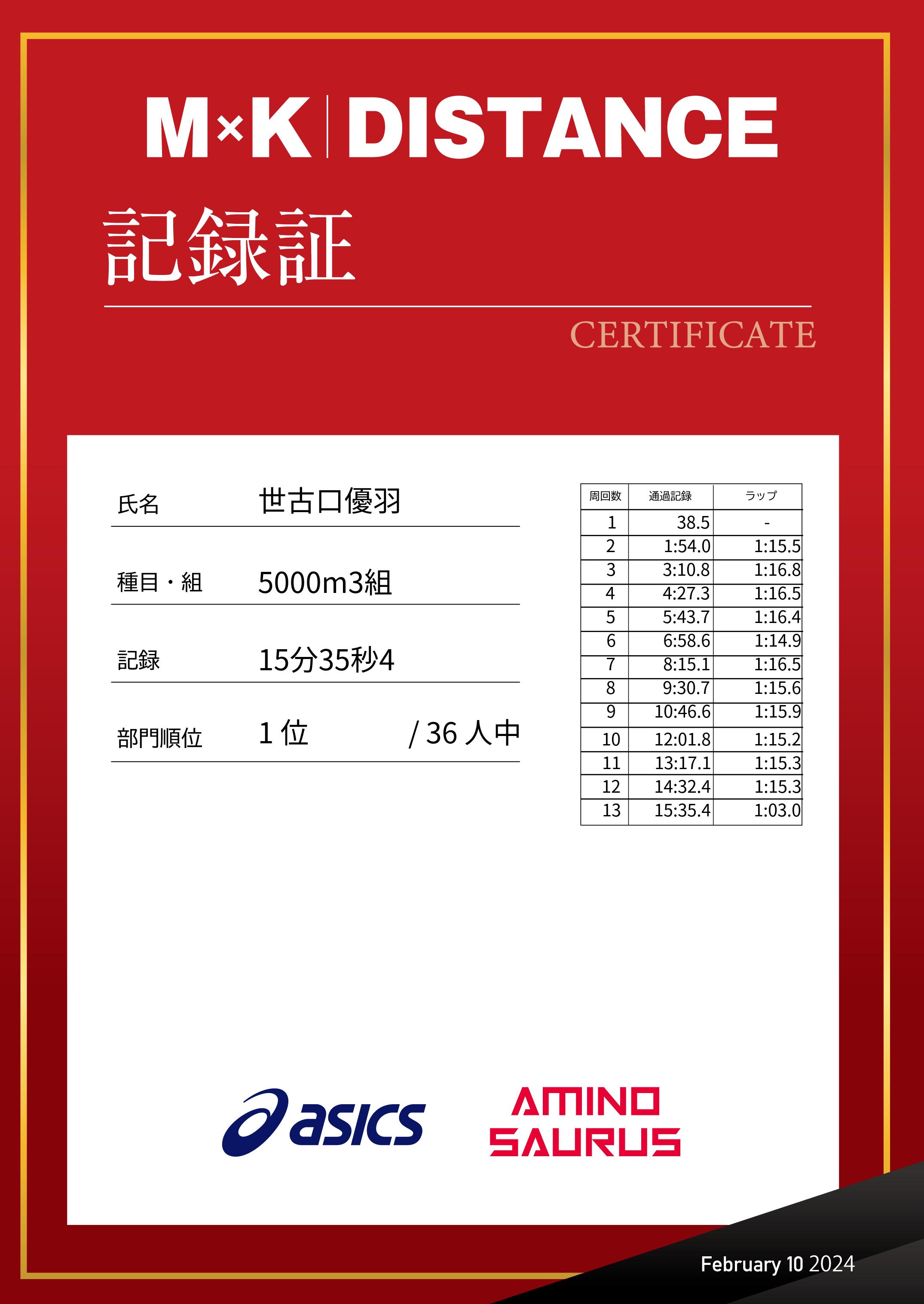 | 距離順位: | 9位/122人中 |