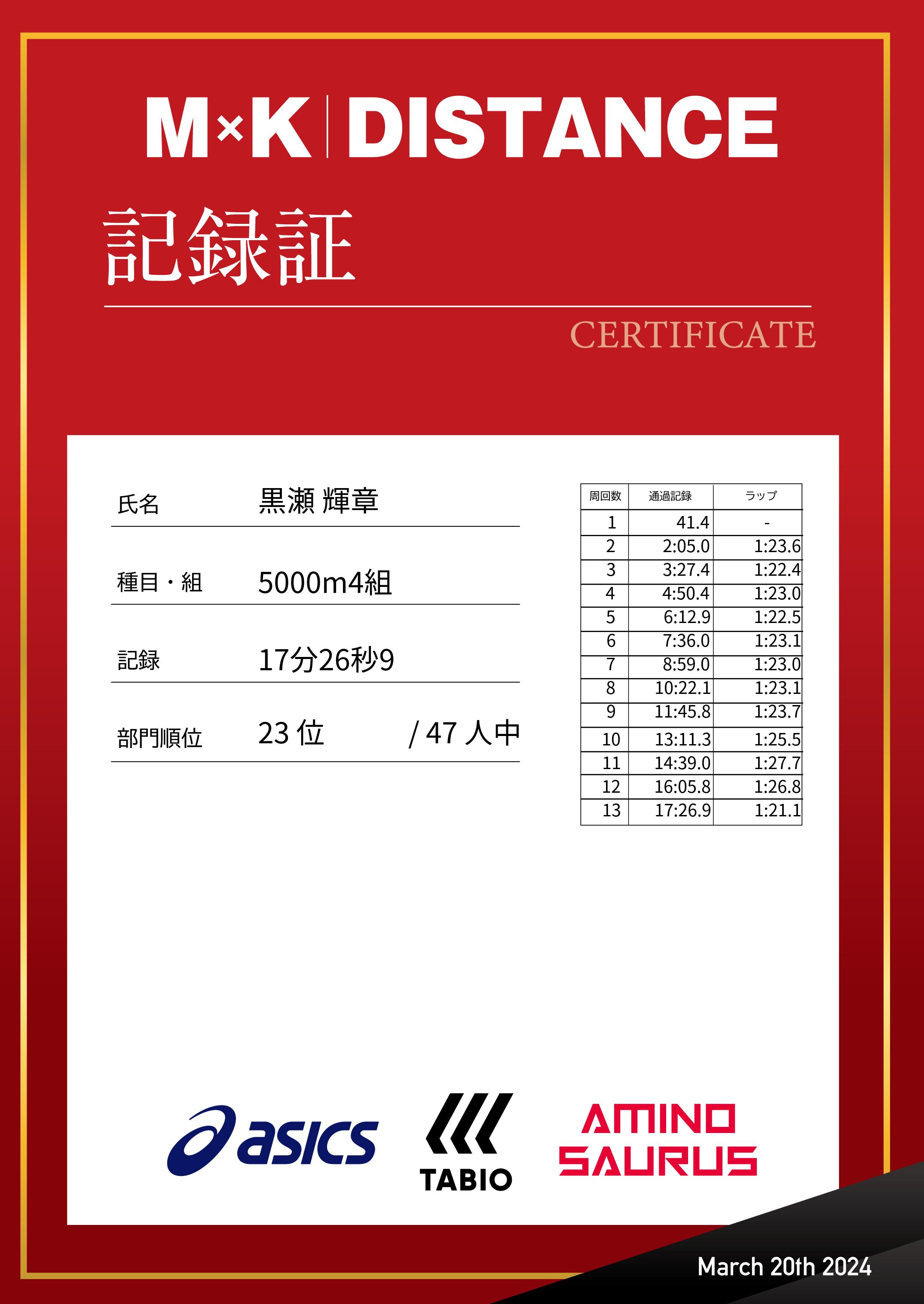 | 距離順位: | 24位/175人中 |