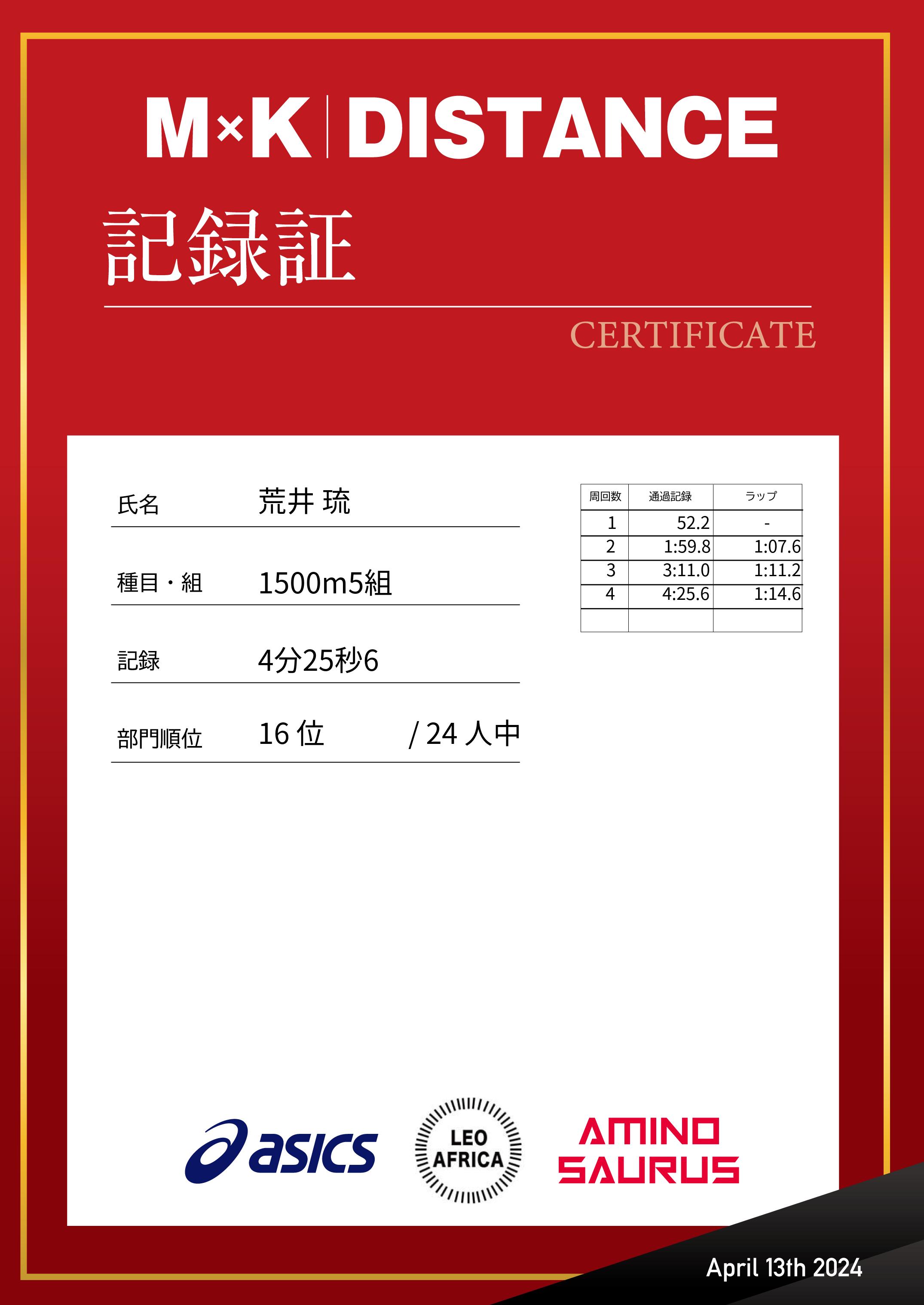 | 距離順位: | 19位/117人中 |