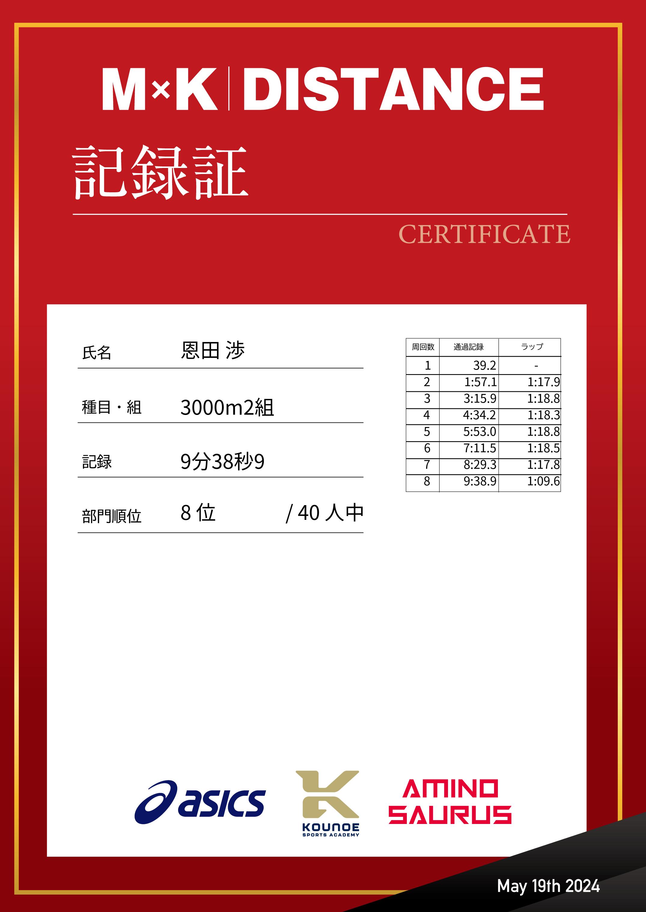 | 記 録: | 9分38秒9 |