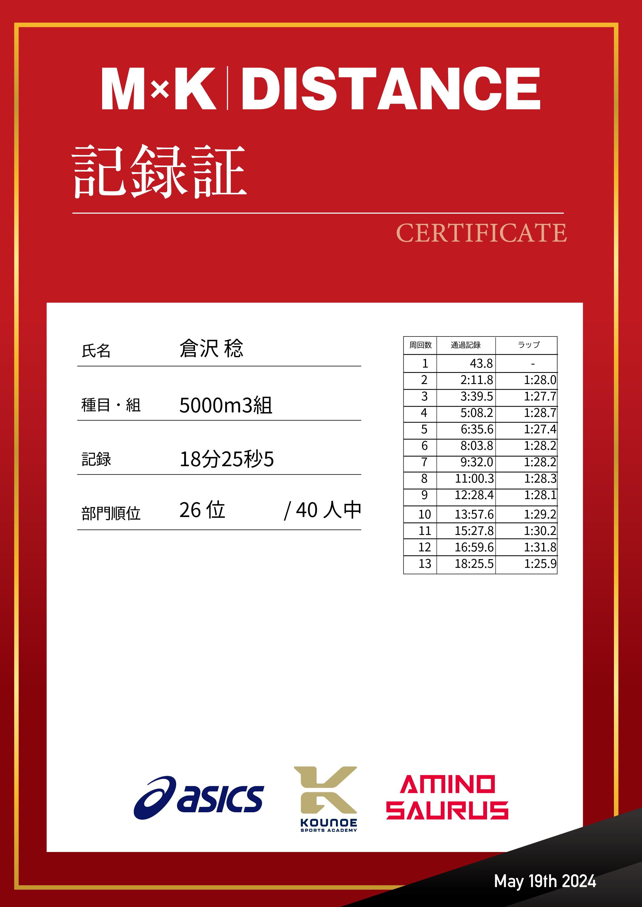 | 記 録: | 18分25秒5 |