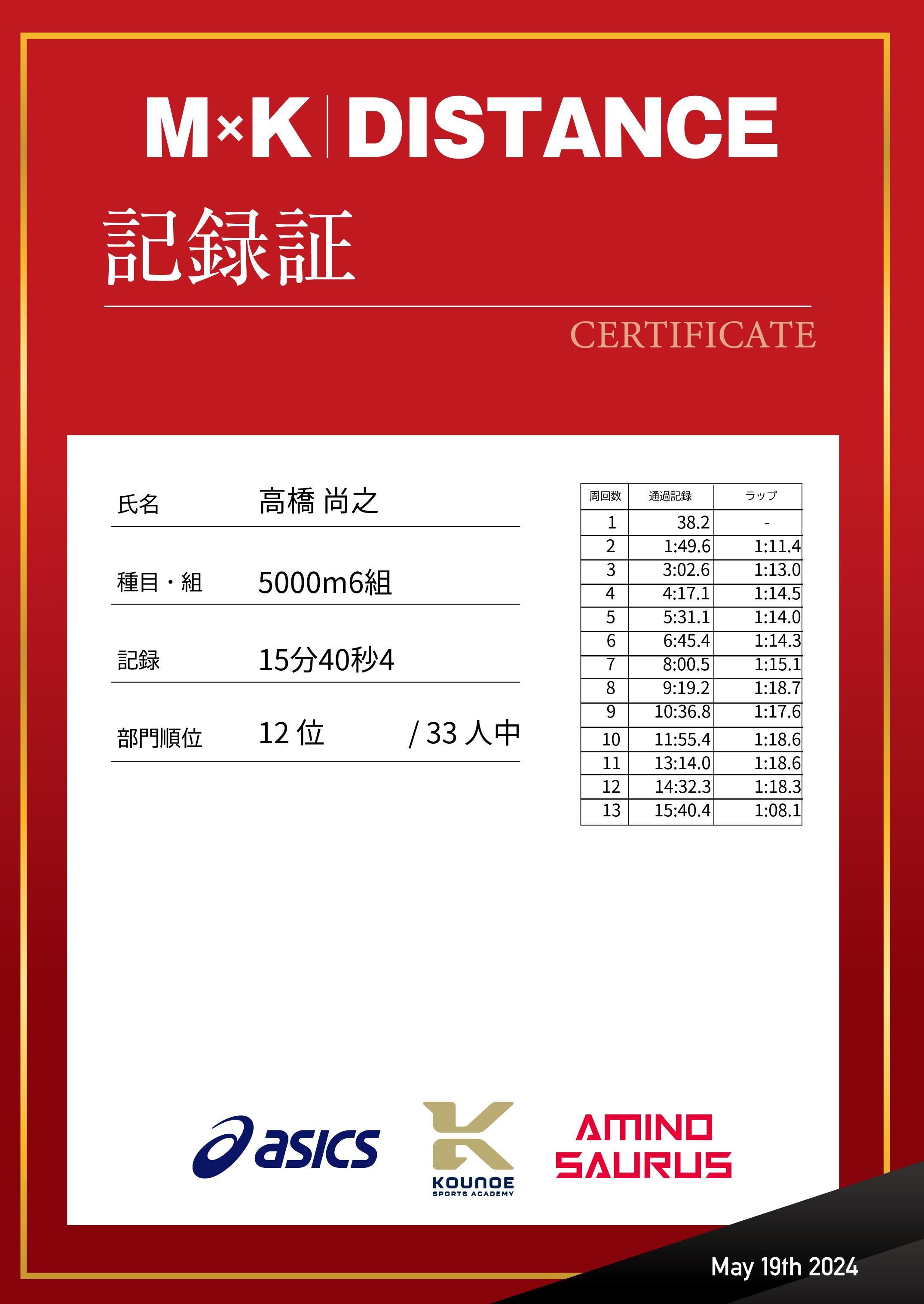 | 距離順位: | 12位/244人中 |