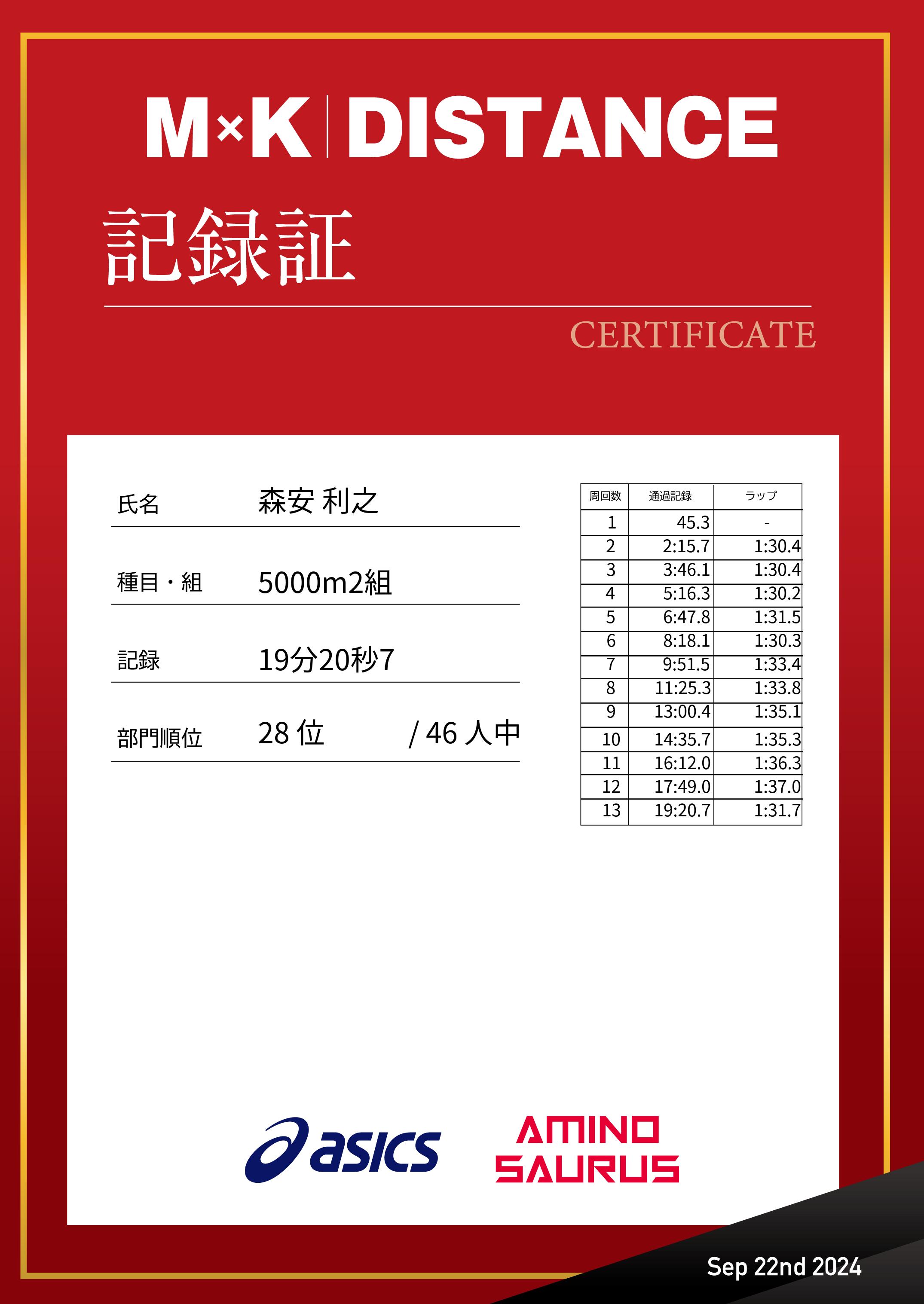 | 距離順位: | 46位/118人中 |