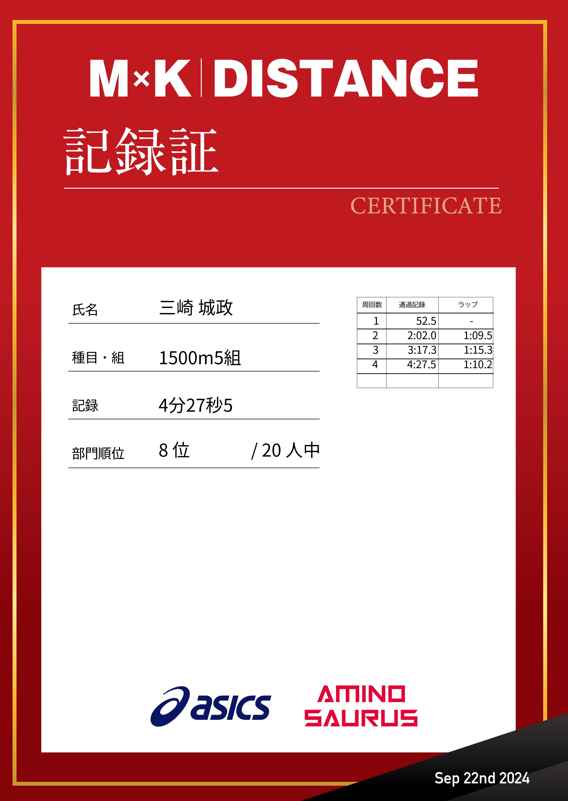 | 距離順位: | 8位/118人中 |