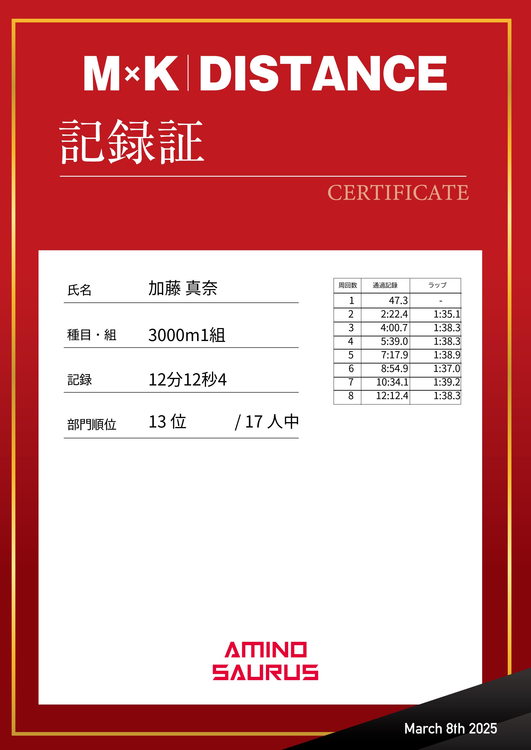 | 記 録: | 12分12秒4 |