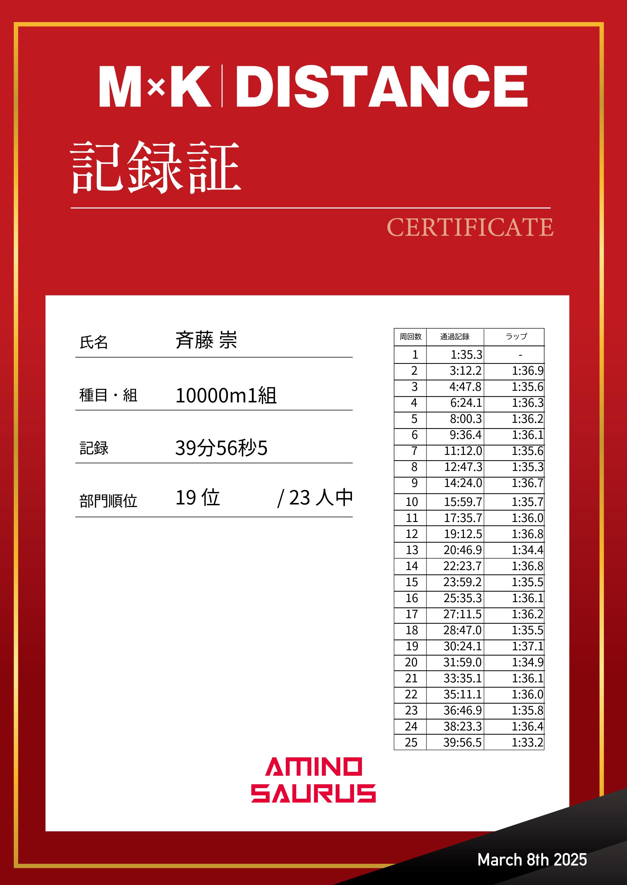 | 距離順位: | 31位/40人中 |