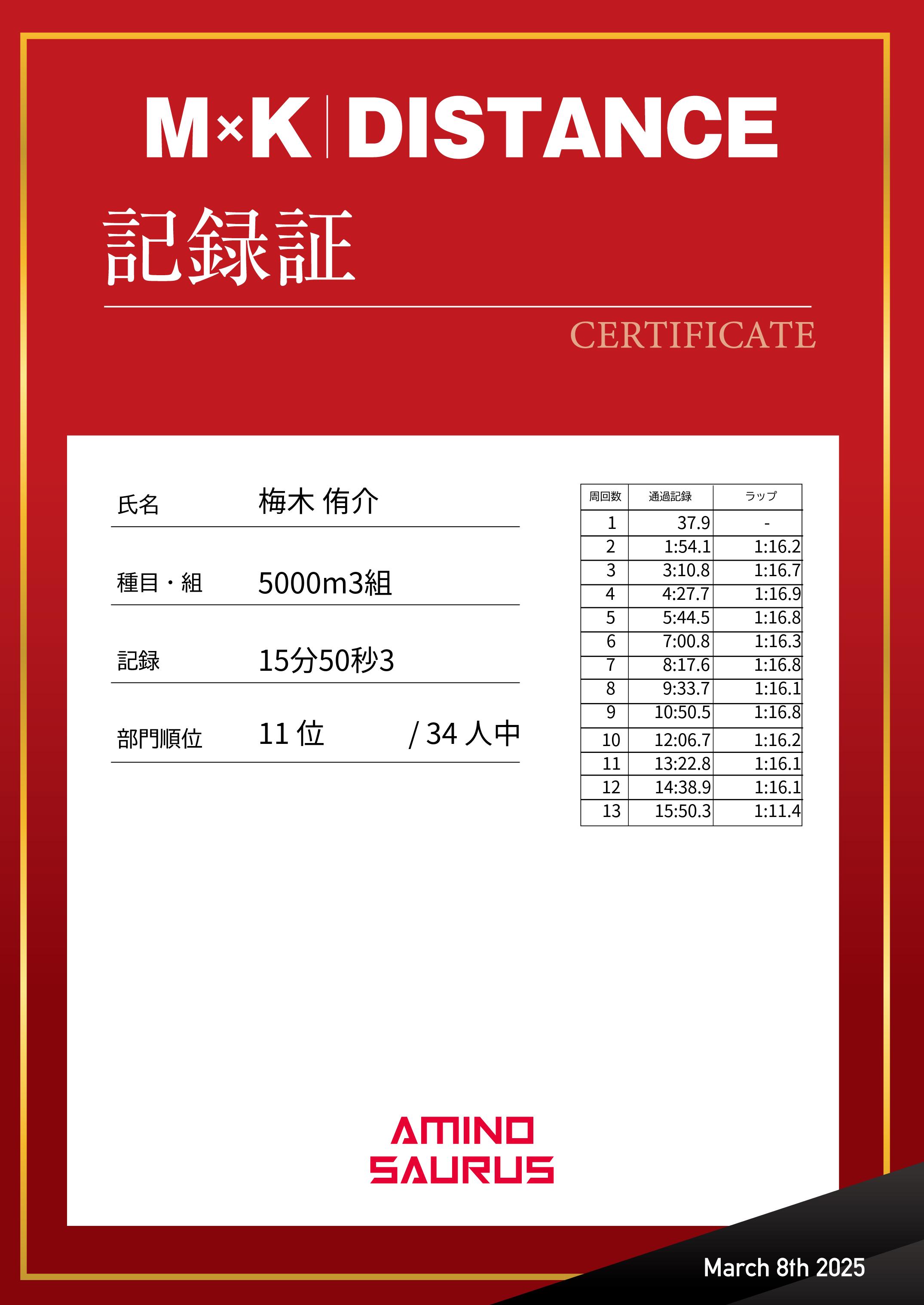 | 距離順位: | 11位/109人中 |