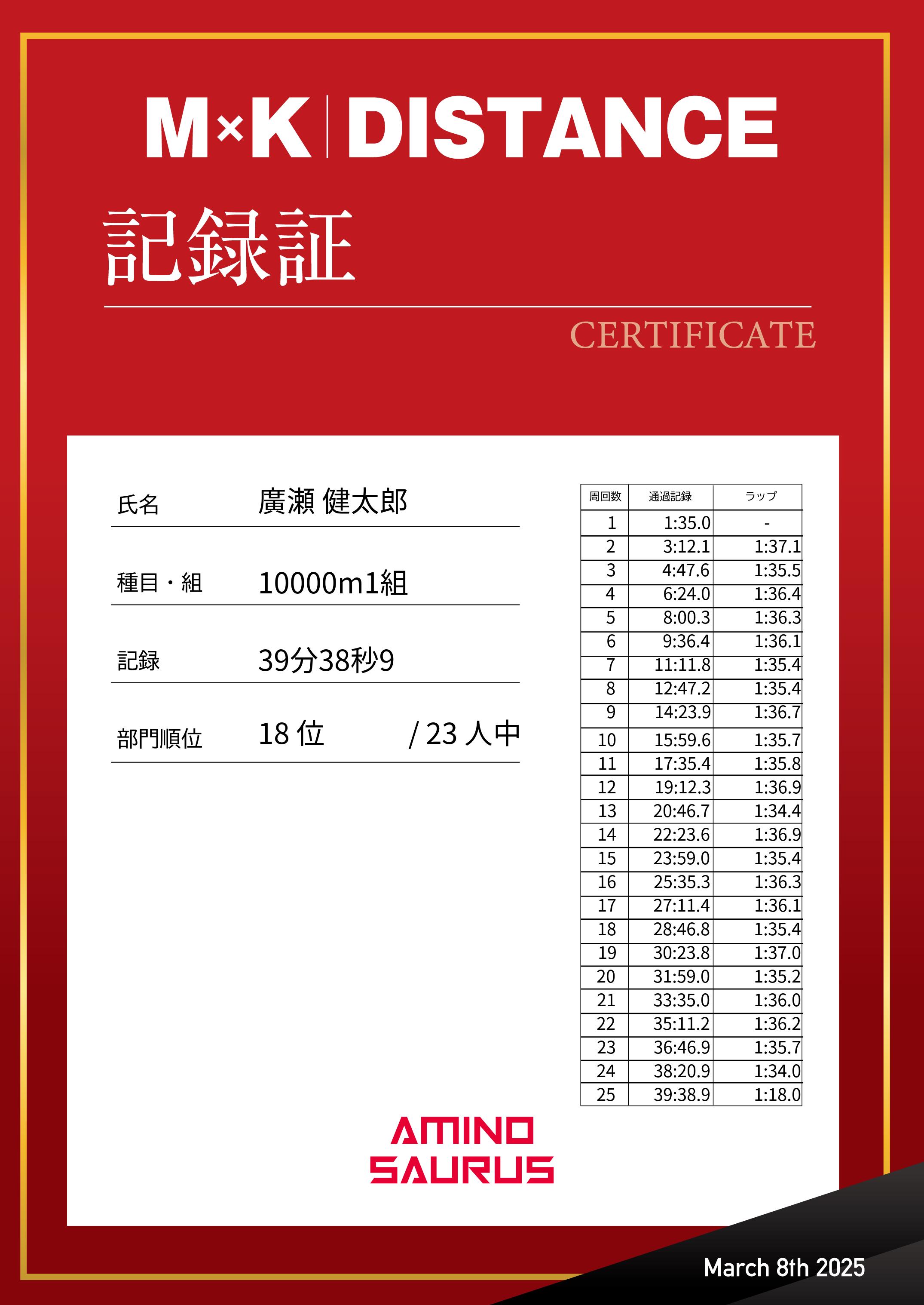| 距離順位: | 30位/40人中 |