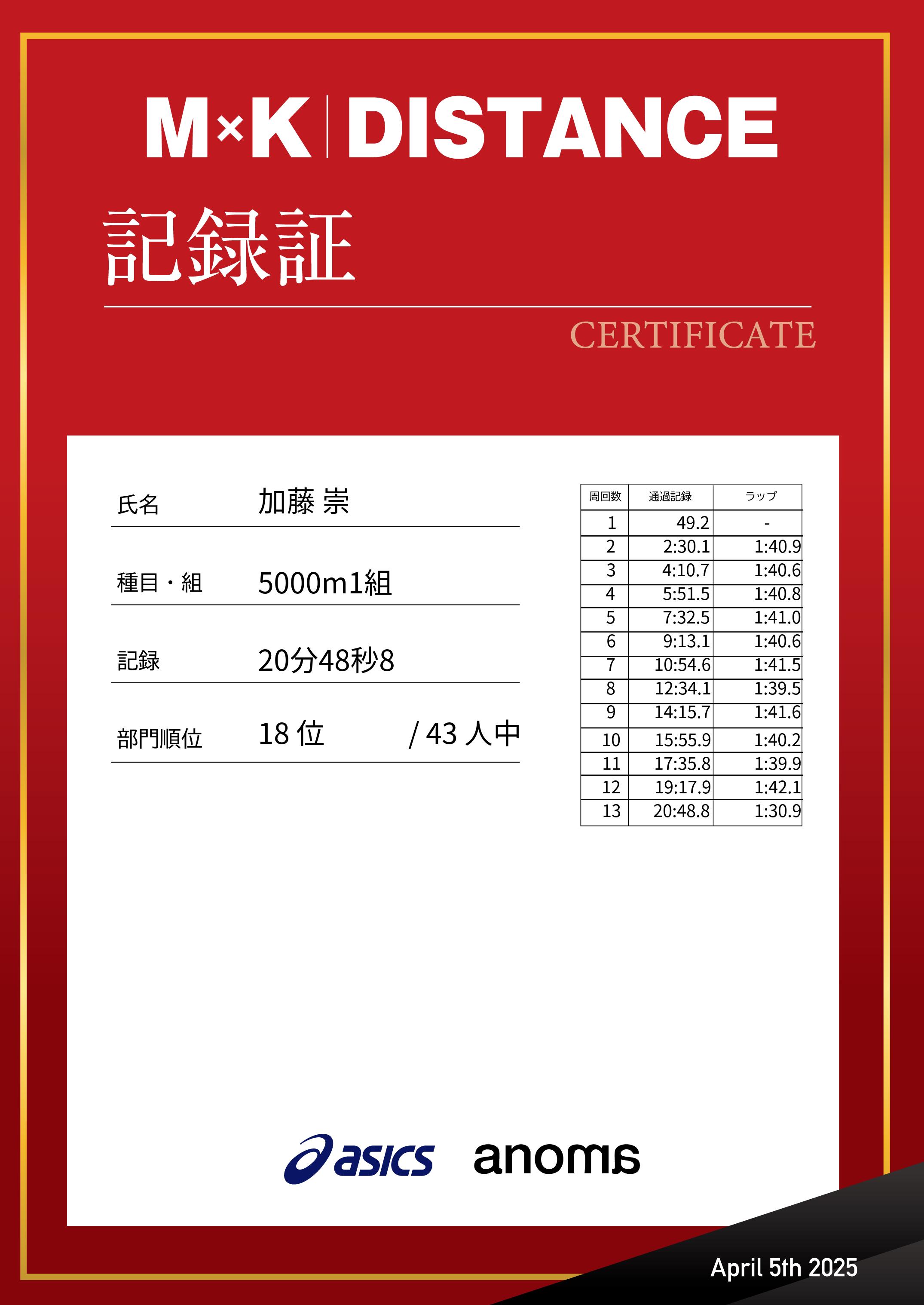 | 記 録: | 20分48秒8 |