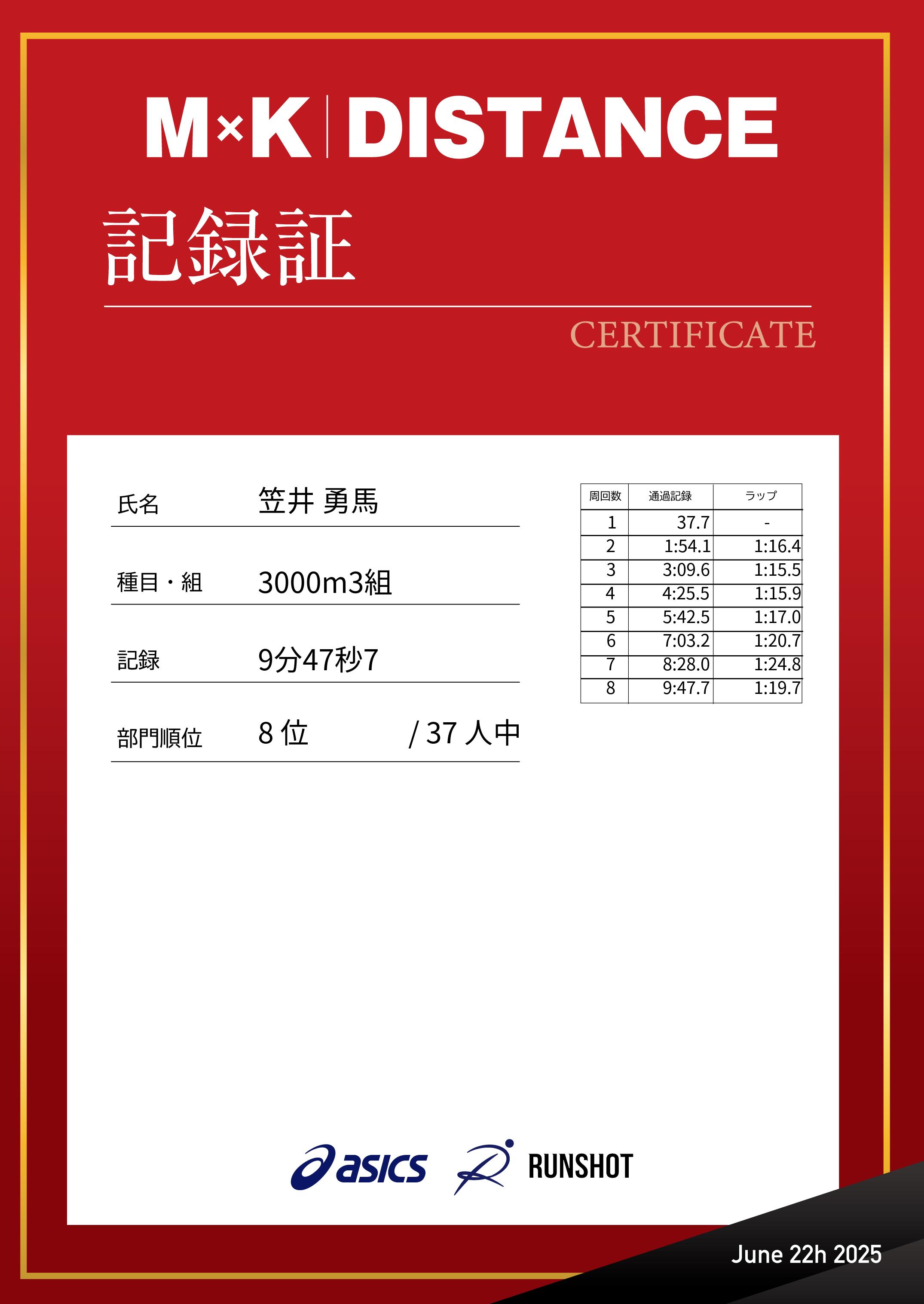 | 記 録: | 9分47秒7 |