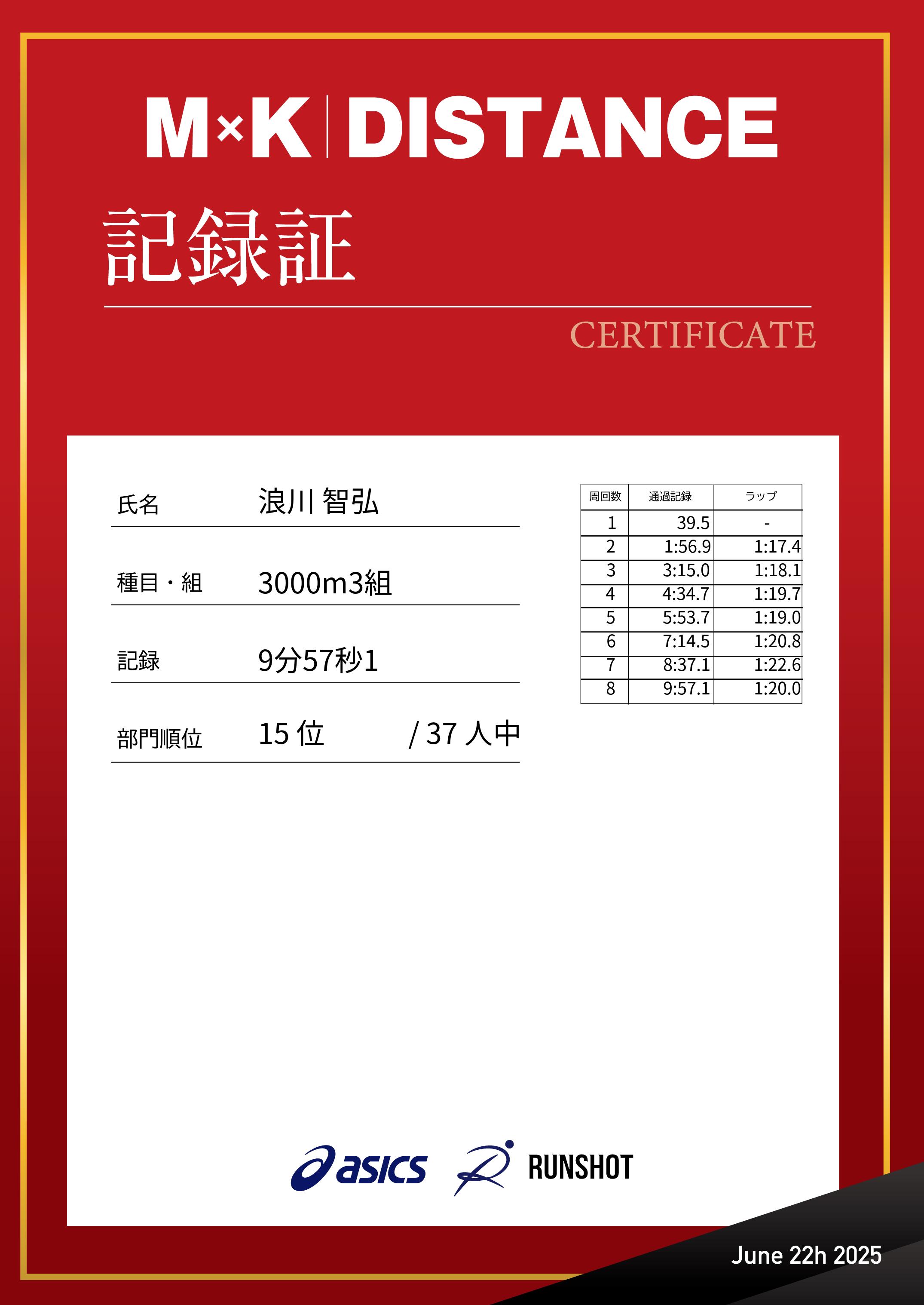 | 距離順位: | 18位/108人中 |