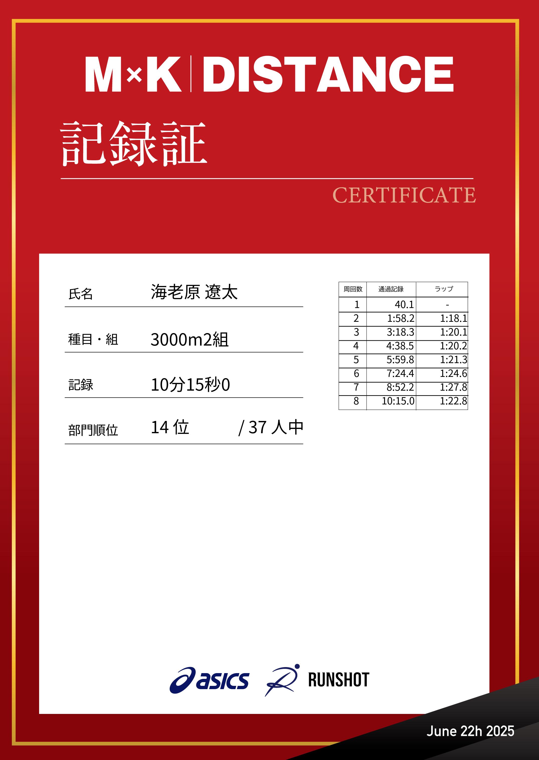 | 記 録: | 10分15秒0 |