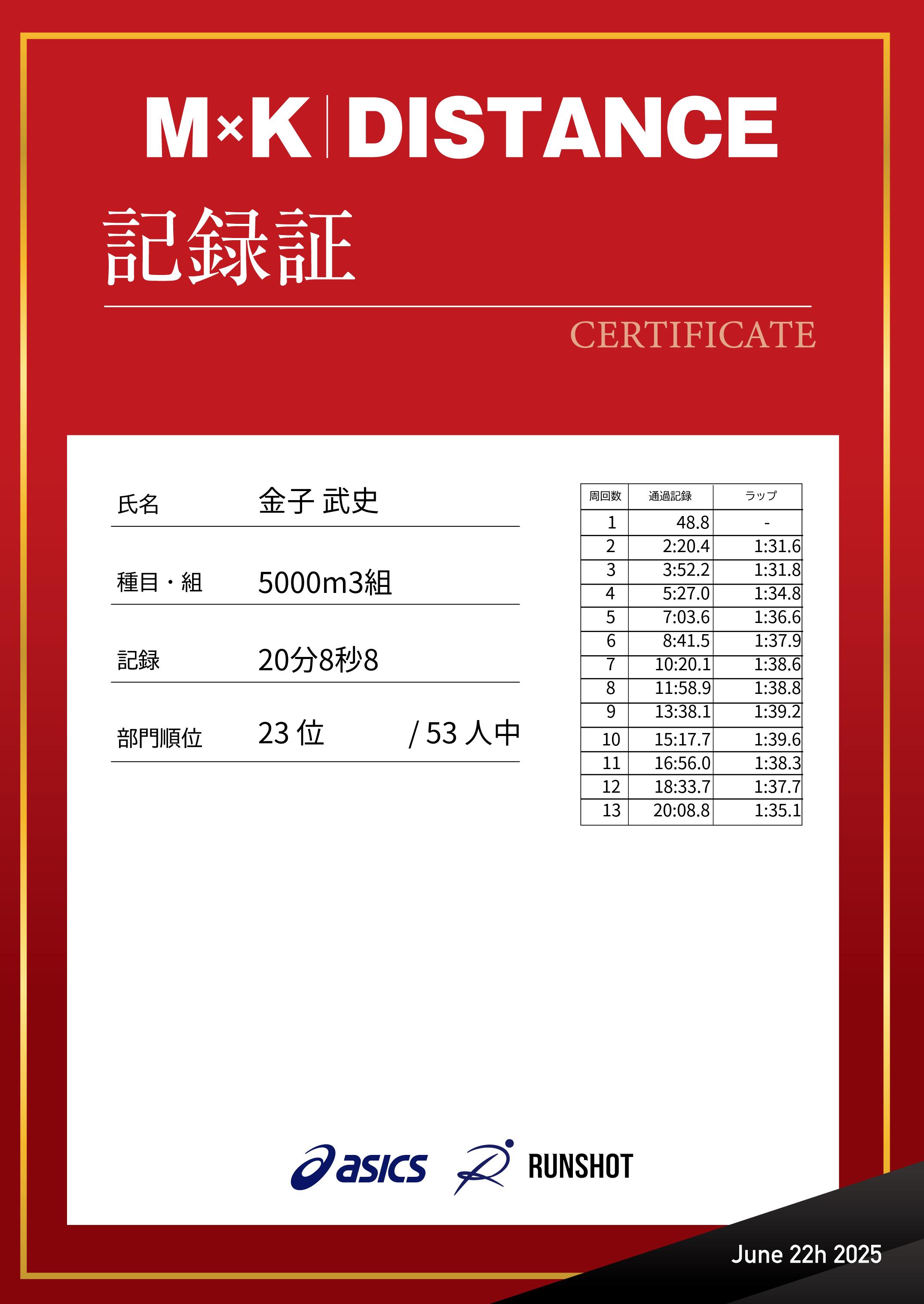 | 記 録: | 20分8秒8 |