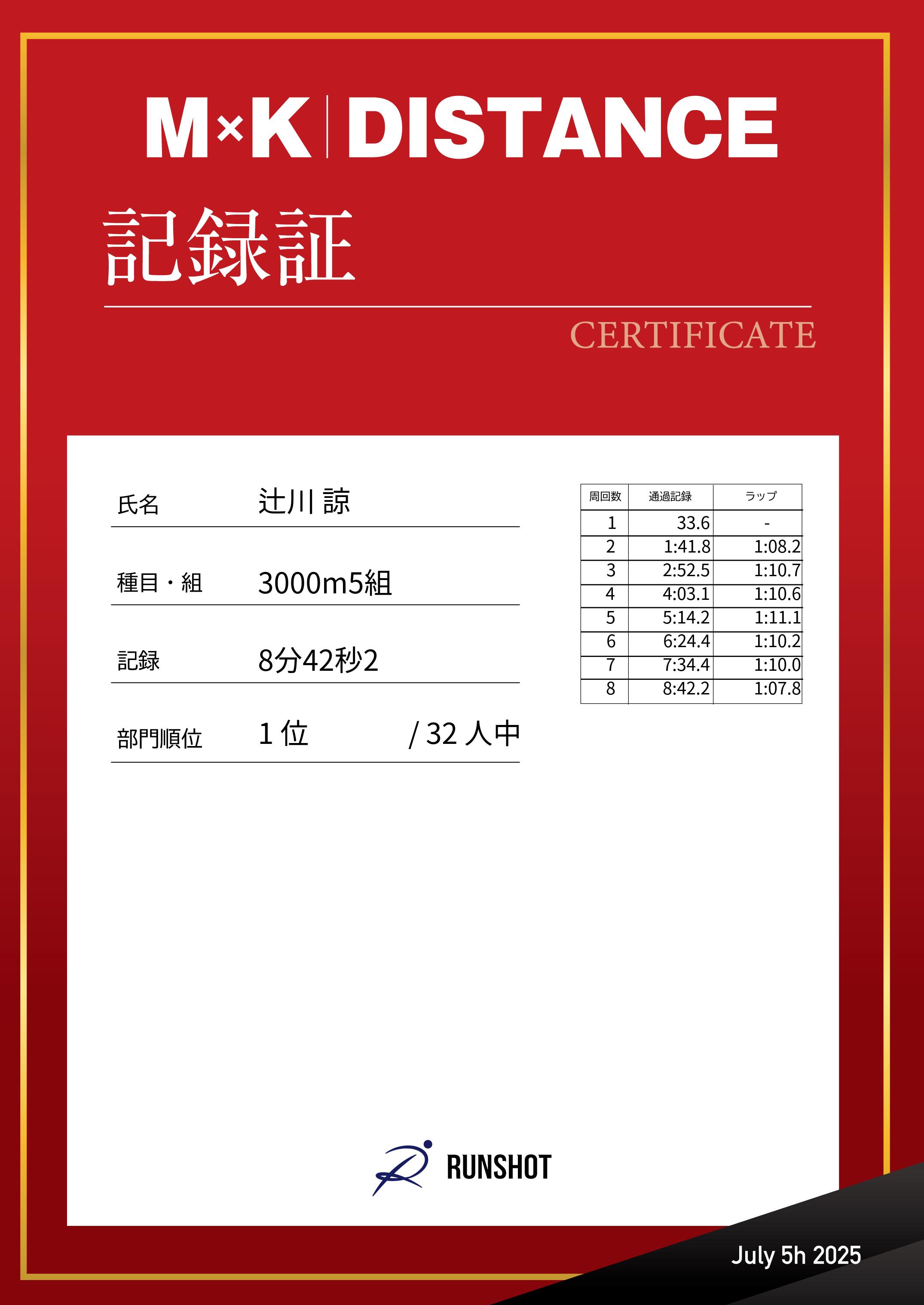 | 記 録: | 8分42秒2 |