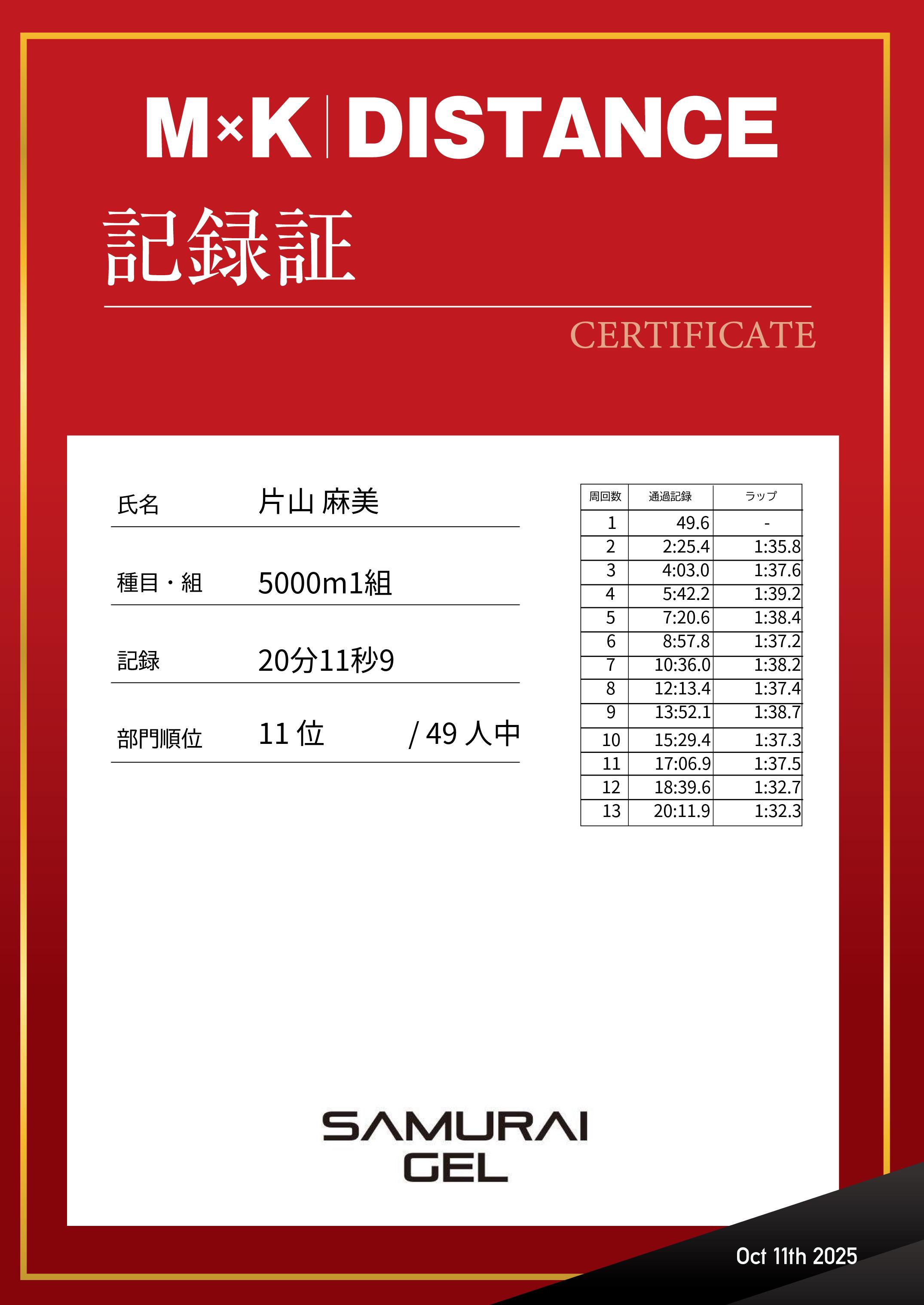 | 記 録: | 20分11秒9 |