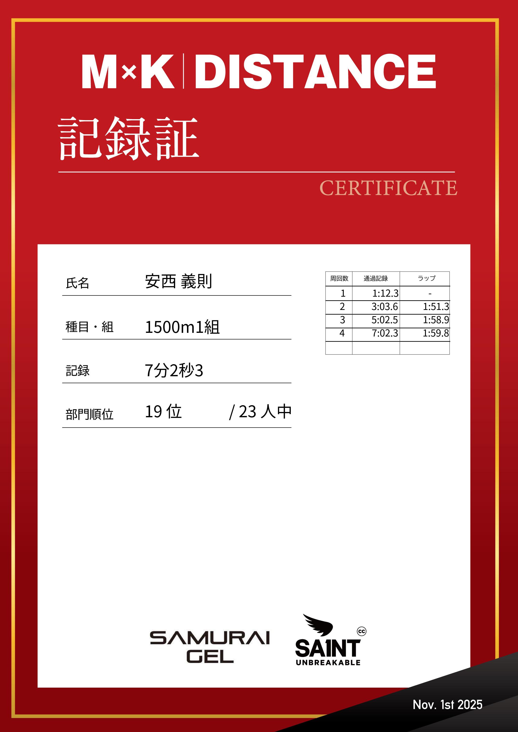 | 距離順位: | 98位/127人中 |